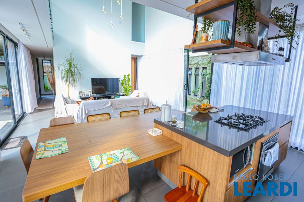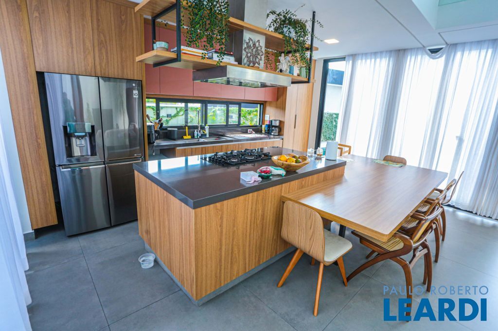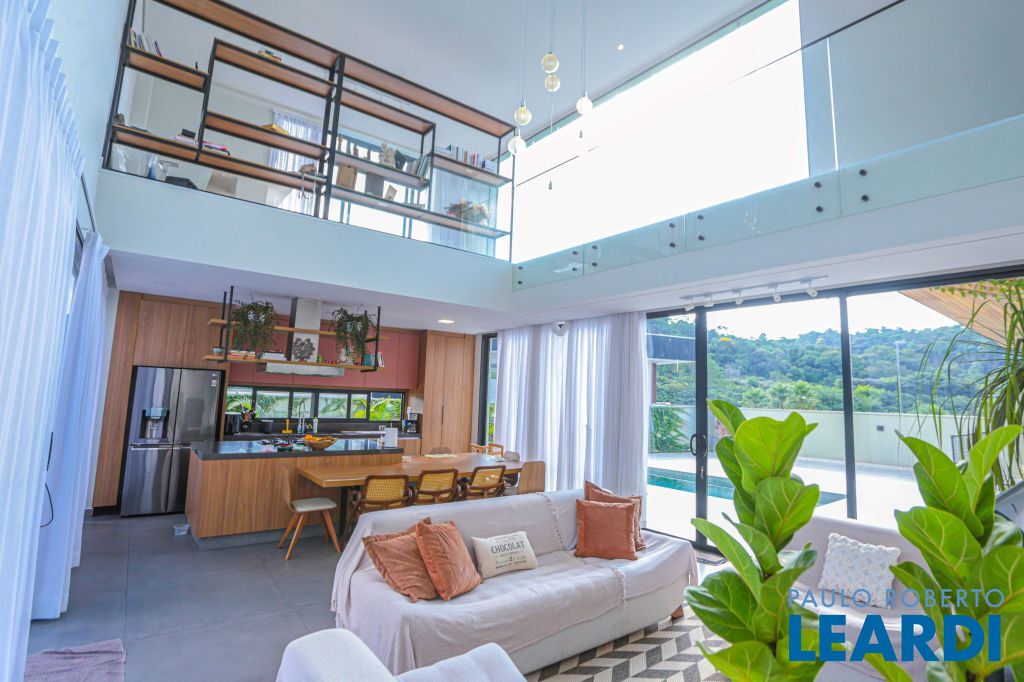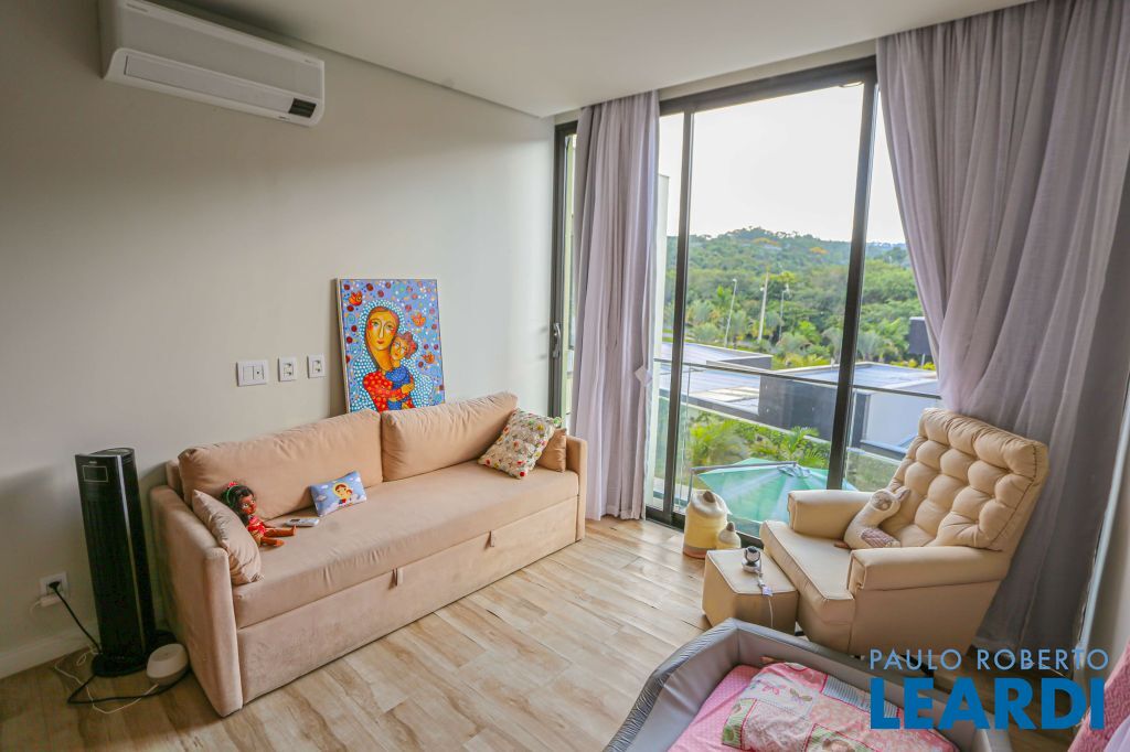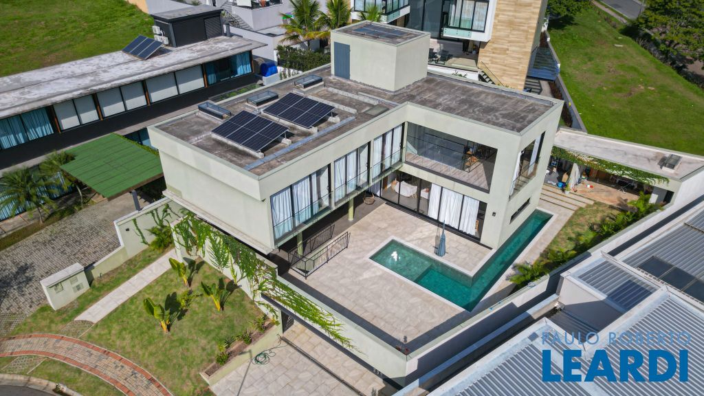 A casa será entregue totalmente mobiliada incluindo eletroeletrônicos, suítes com estrutura de ar-condicionado, sendo 2 já com a instalação do ar realizadas. Escritório no primeiro pavimento, sala com pé direito duplo integrada com a área de lazer e cozinha estilo americana.