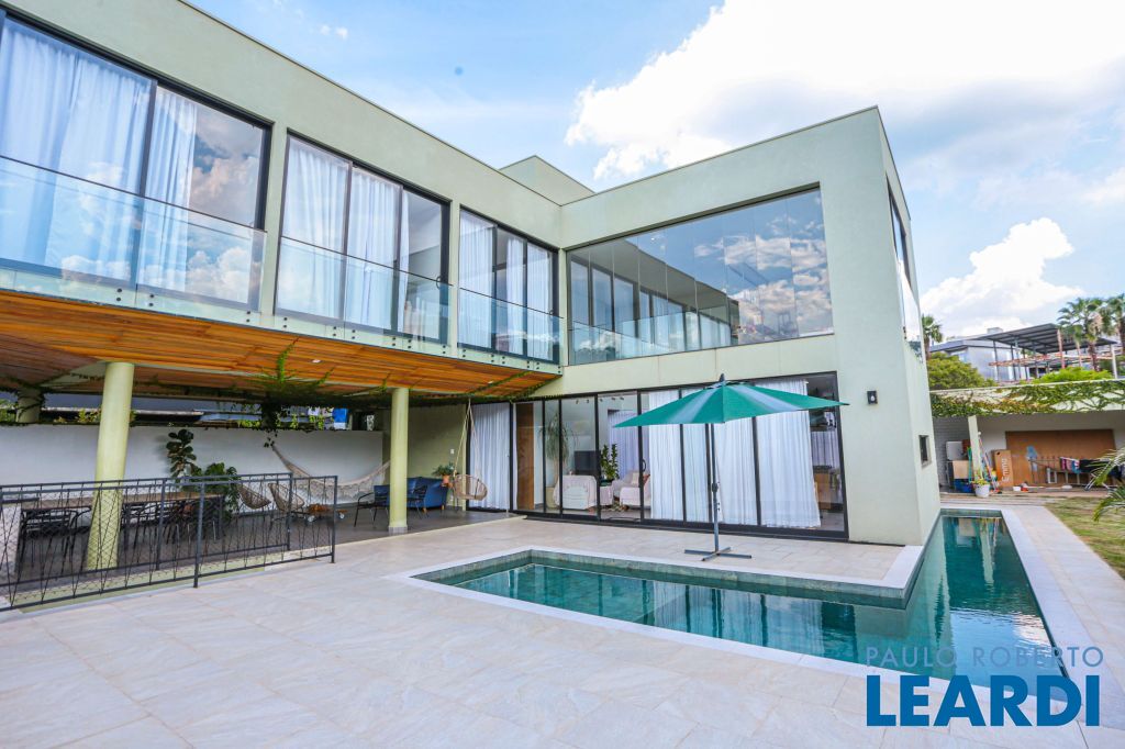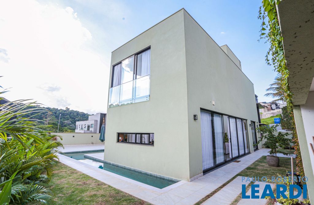 Casa nova, moderna com 4 suítes sendo 1 suíte térrea e 3 suítes no pavimento superior, com área construída de 500m² sendo 25,80m² de área de lazer (incluindo piscina).