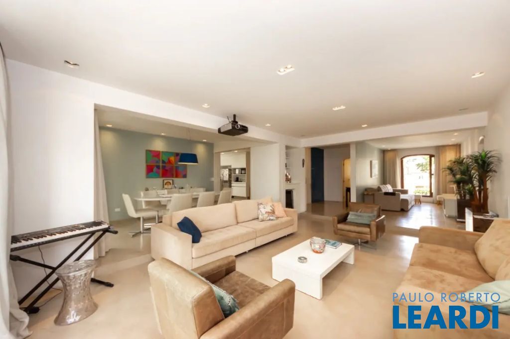 - Sala ampla de três ambientes é um convite ao convívio e ao entretenimento, destacando-se pelo telão que proporciona experiências cinematográficas imersivas.