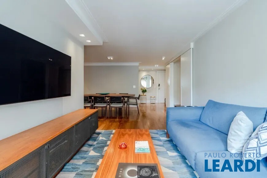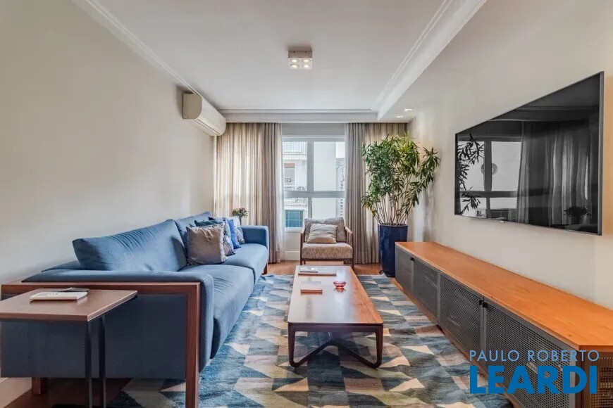 Apartamento à venda no bairro Jardins em São Paulo, com 127m², 3 dormitórios sendo 1 suíte, 4 banheiros, sala grande de tv e jantar, armários embutidos nos dormitórios e cozinha, ar condicionado, área de serviço, dependência de empregada, banheiro de serviço, chuveiro a gás, box blindex, mobiliado, pronto para morar.