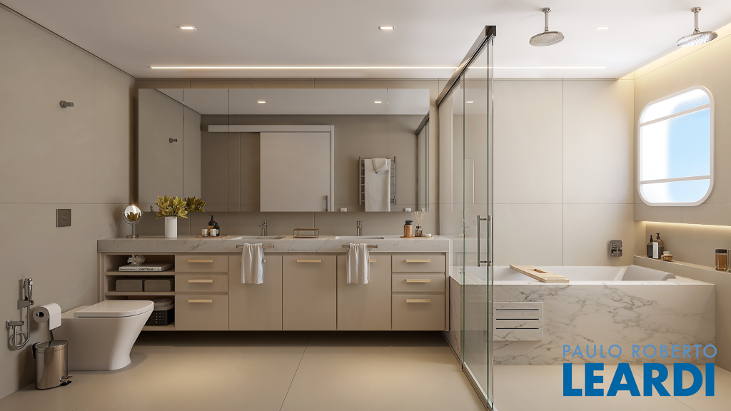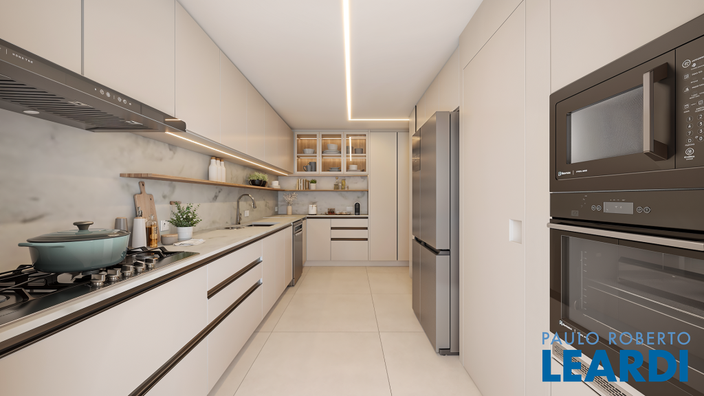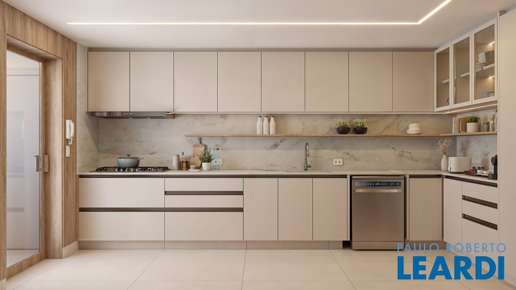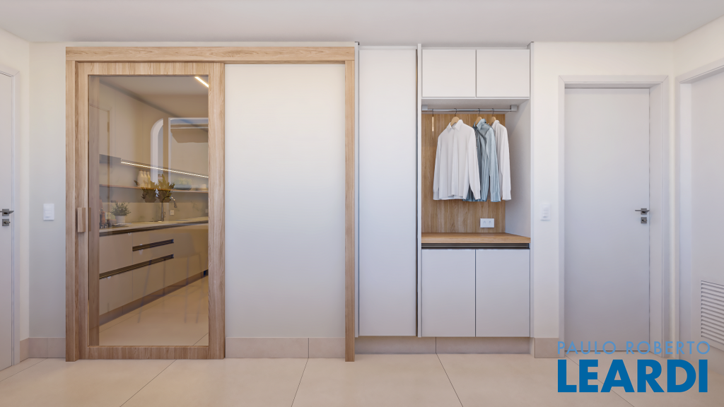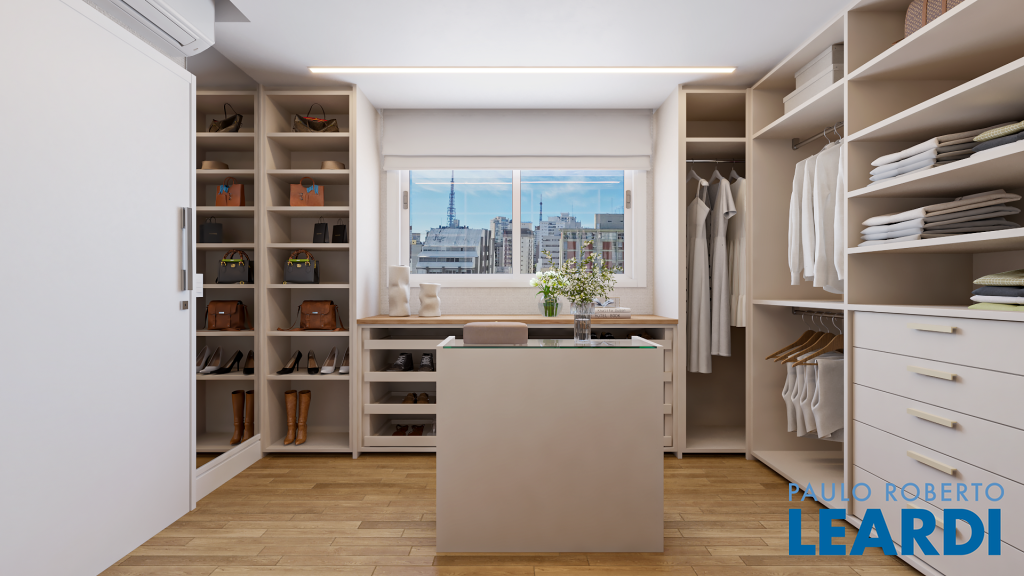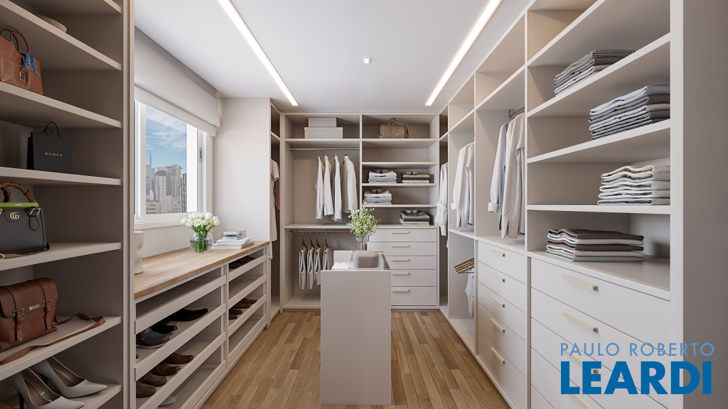 ° Marcenaria Bontempo no closet da suíte master, banheiros, rouparia, cozinha e área de serviço, projetada para dar organização e funcionalidade ao apartamento