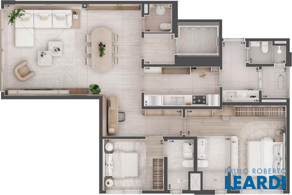 Para esse projeto definimos como premissas: uma arquitetura sofisticada, flexibilidade de plantas, todos atributos de um projeto de alto padrão e áreas de lazer que transmitem exclusividade em cada detalhe, assinatura principal dos projetos Plaenge.