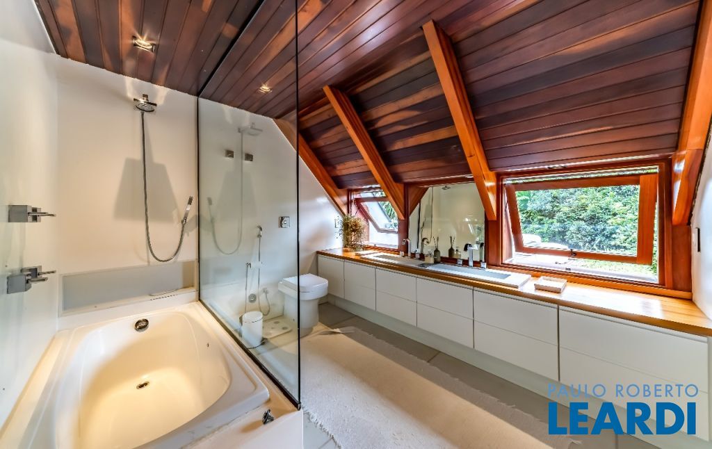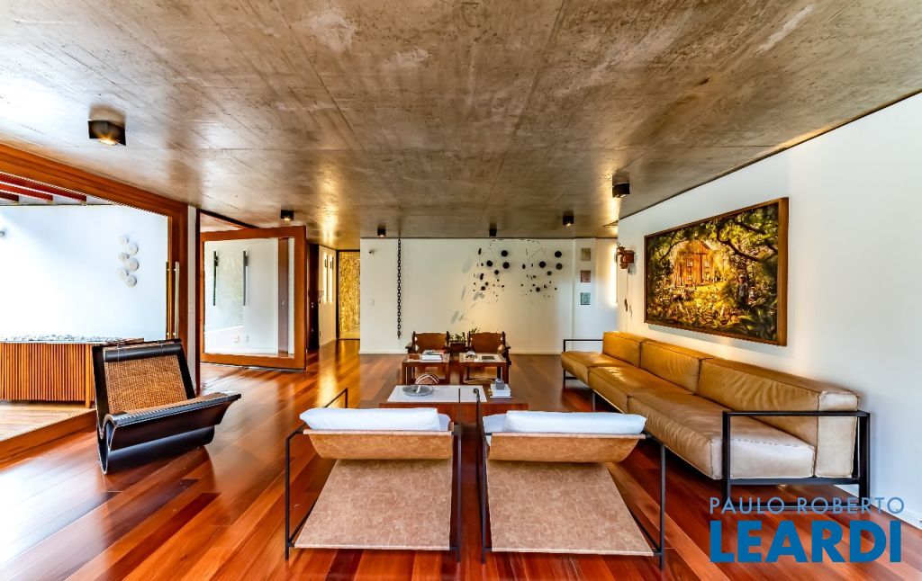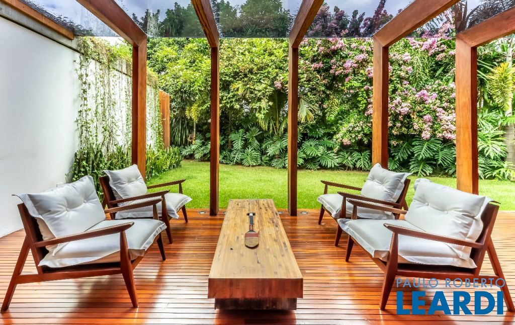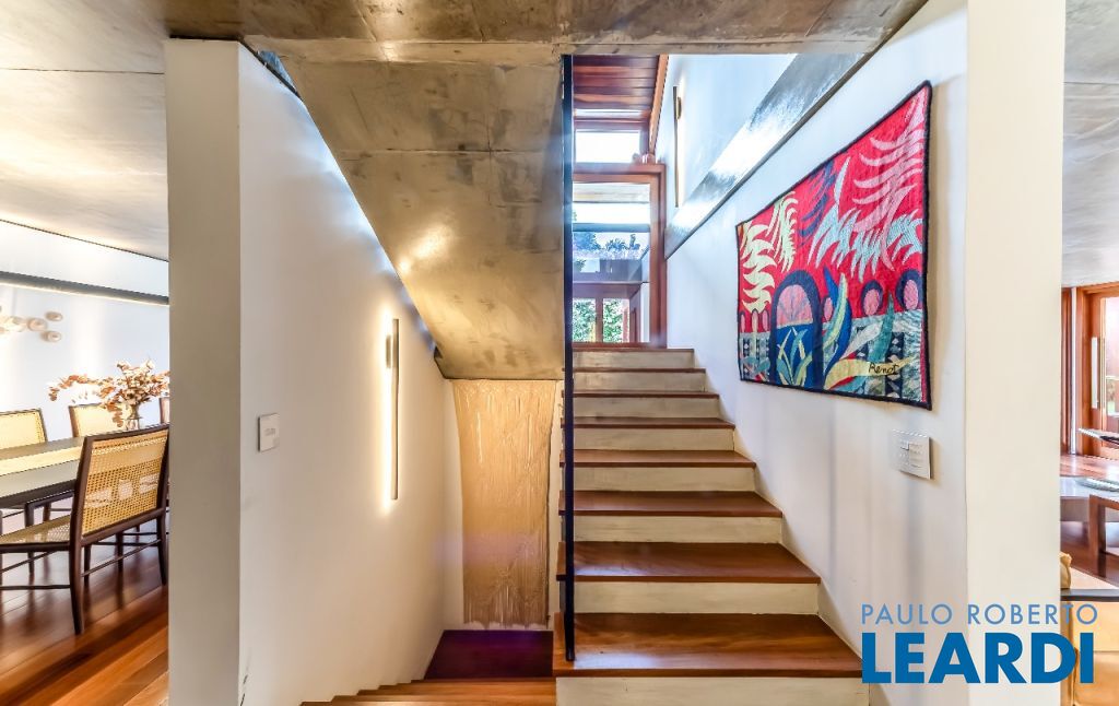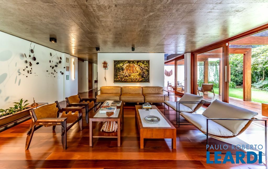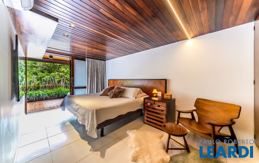 A casa se destaca pelas amplas janelas de vidro que capturam a beleza do paisagismo tropical ao redor. A entrada abundante de luz natural cria um ambiente agradável e sereno, perfeito para quem aprecia a conexão com a natureza e o conforto no dia a dia.