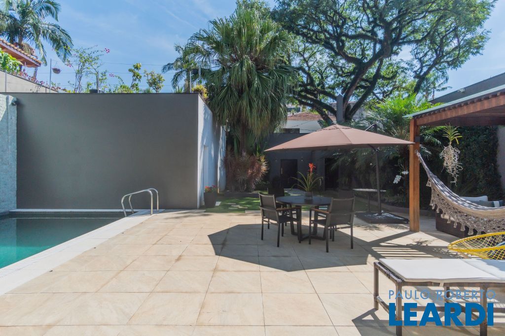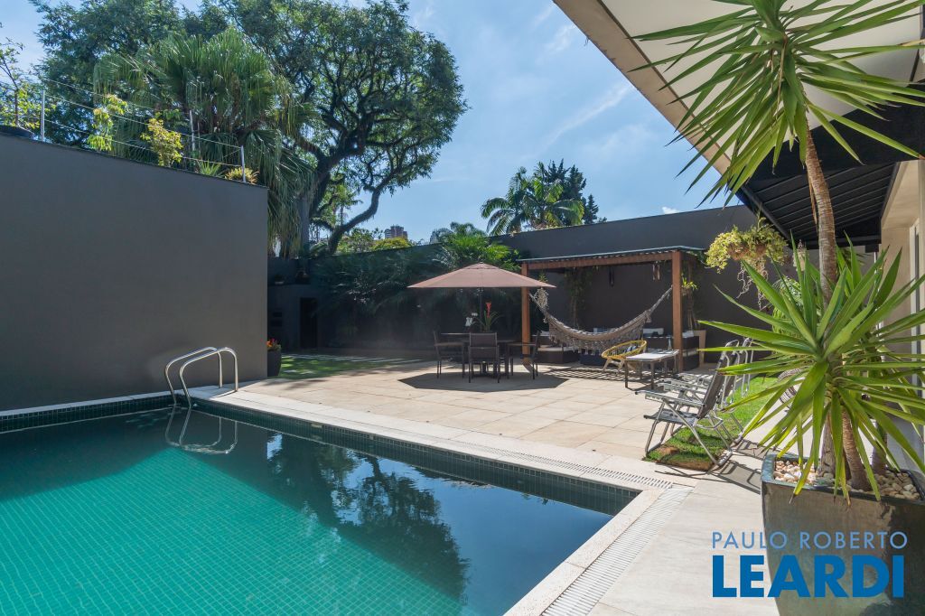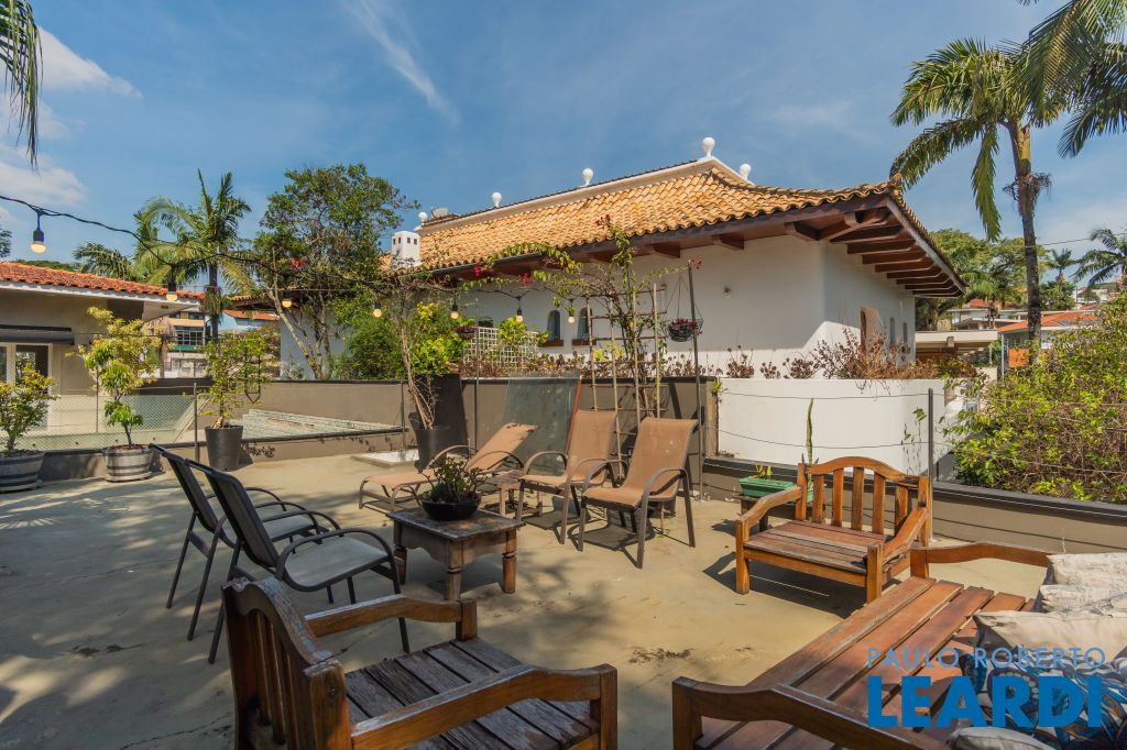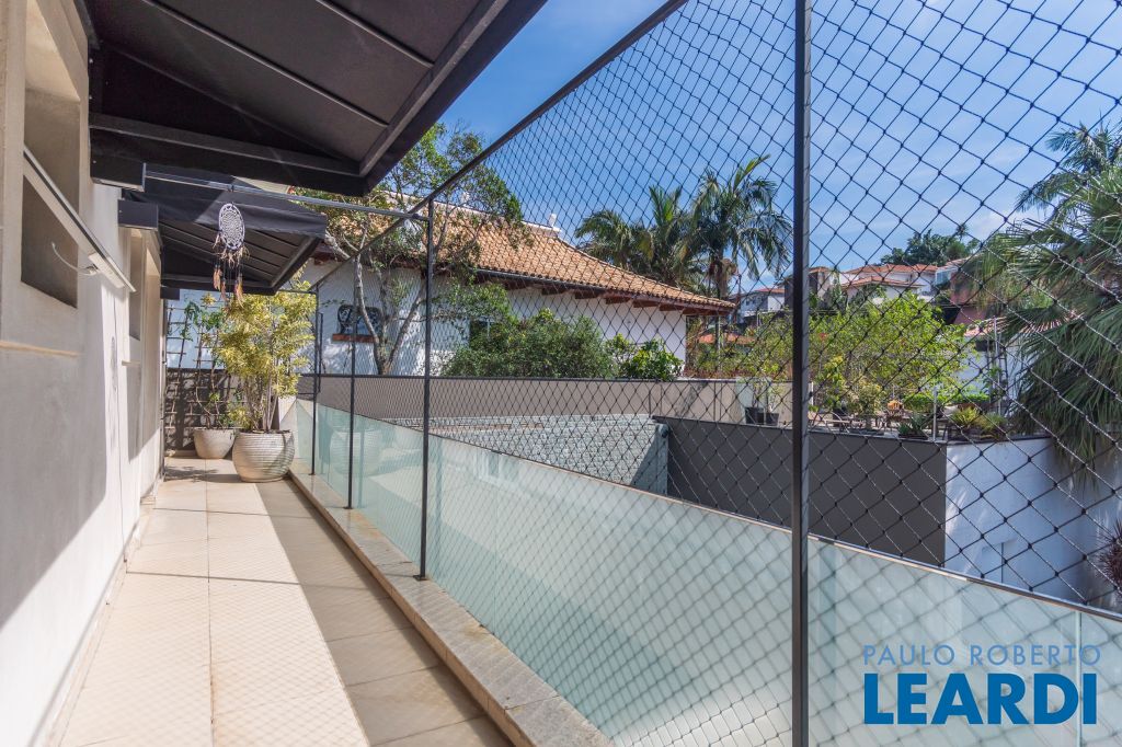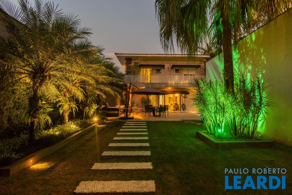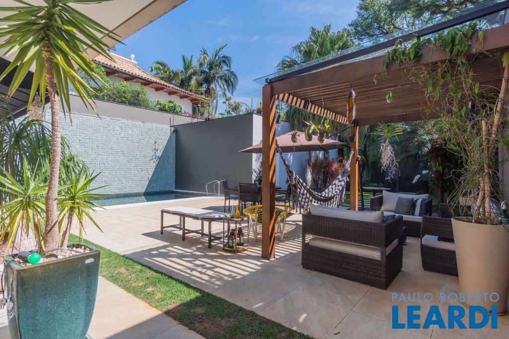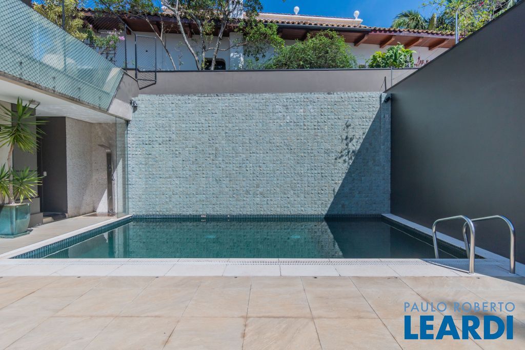 No térreo uma piscina em formato retangular climatizada e com cascata integrada ao jardim; Roof top com ambiente muito interessante, integrado às árvores do terreno;