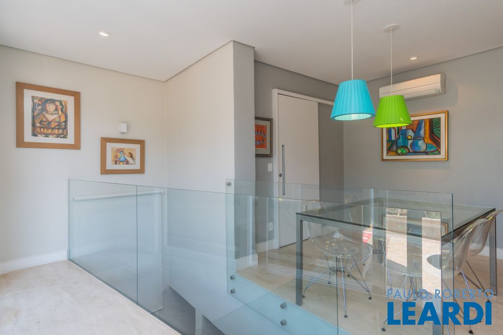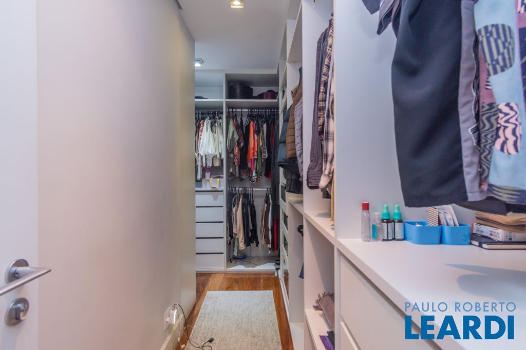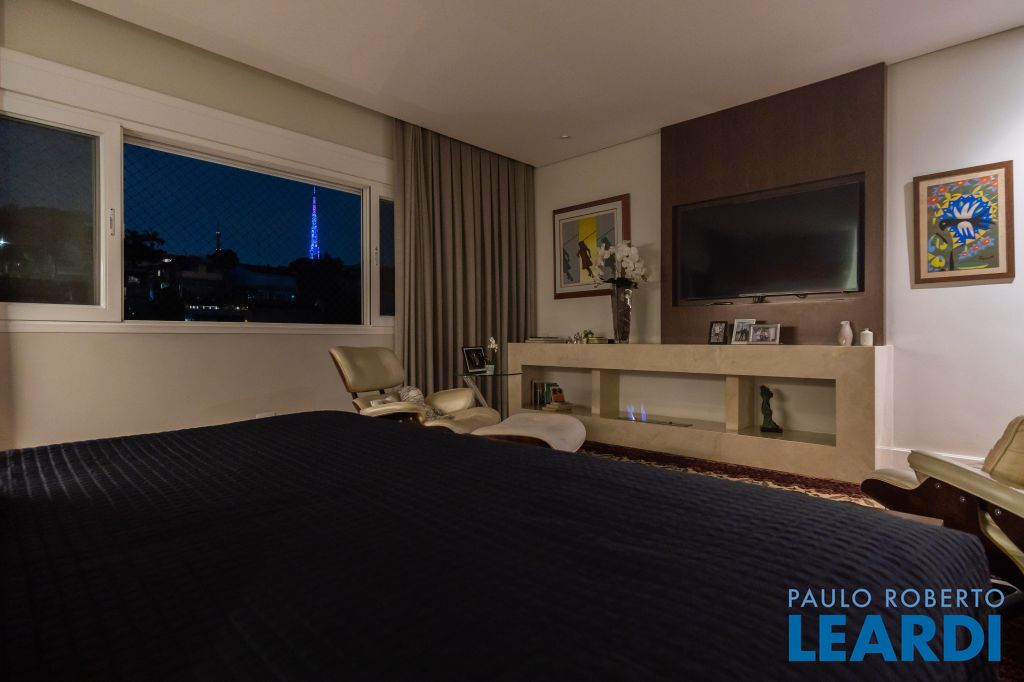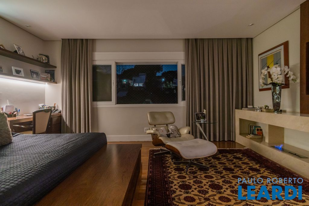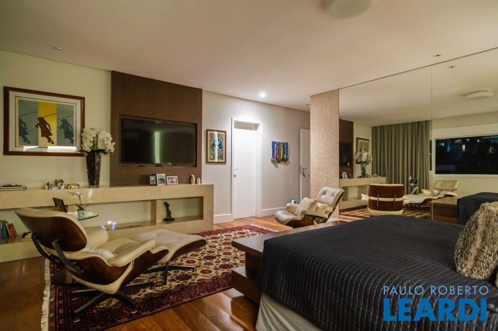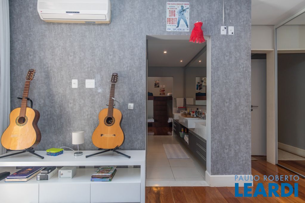 4 suítes na parte superior, sendo 1 suíte master com closet e lareira à álcool e uma vista para o skyline da região da Paulista;