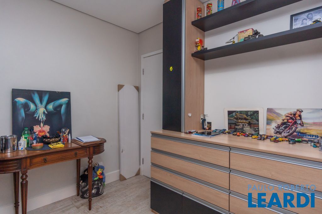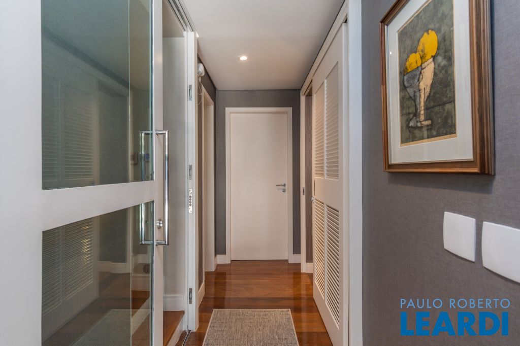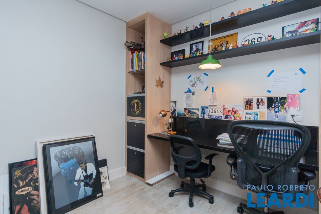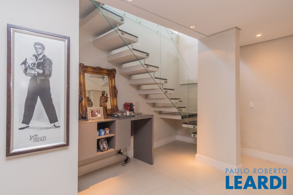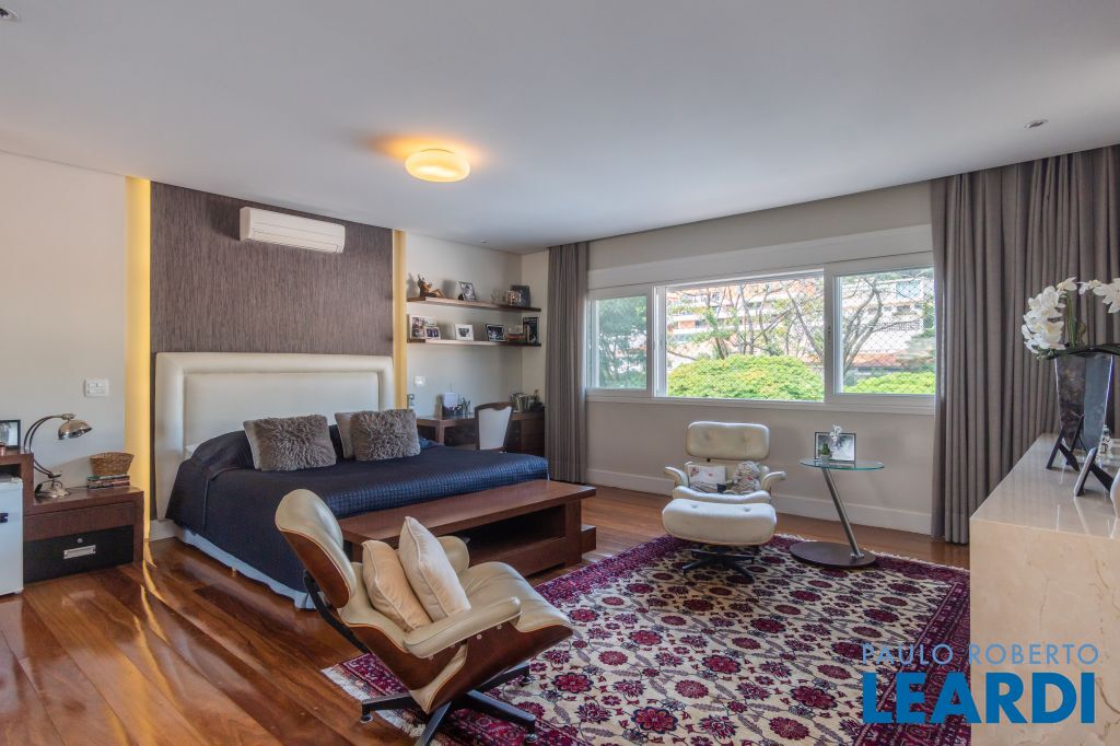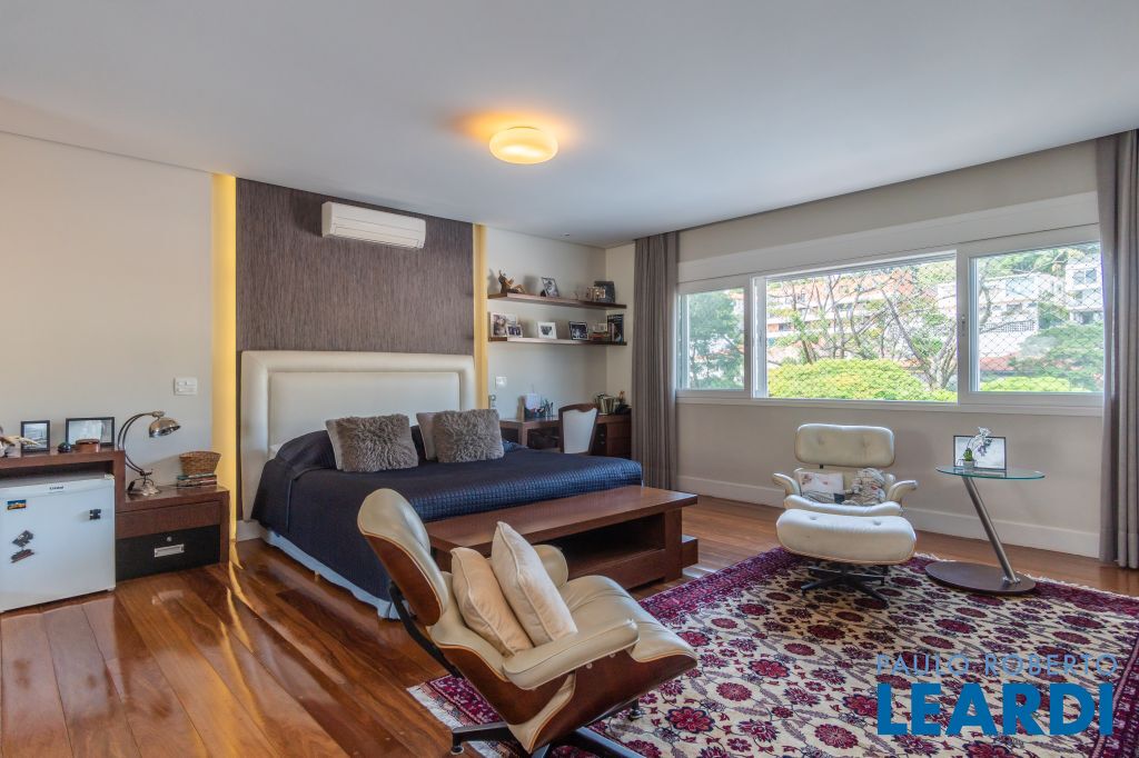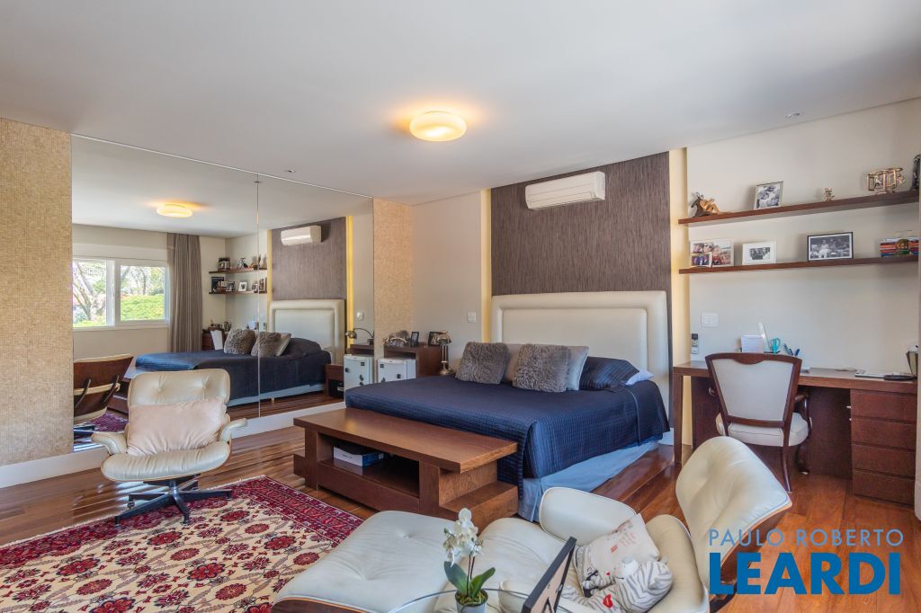 4 suítes na parte superior, sendo 1 suíte master com closet e lareira à álcool e uma vista para o skyline da região da Paulista;