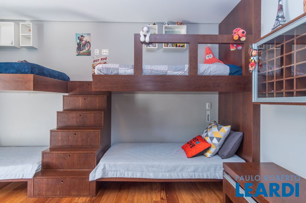 Demais suítes com armários e banheiros equipados, sendo que 2 das suítes estão integradas por um banheiro em comum, porém a reversão é fácil de executar;