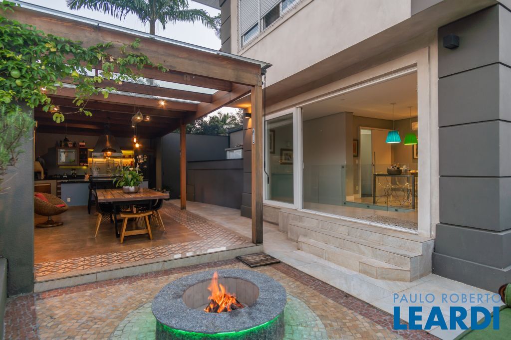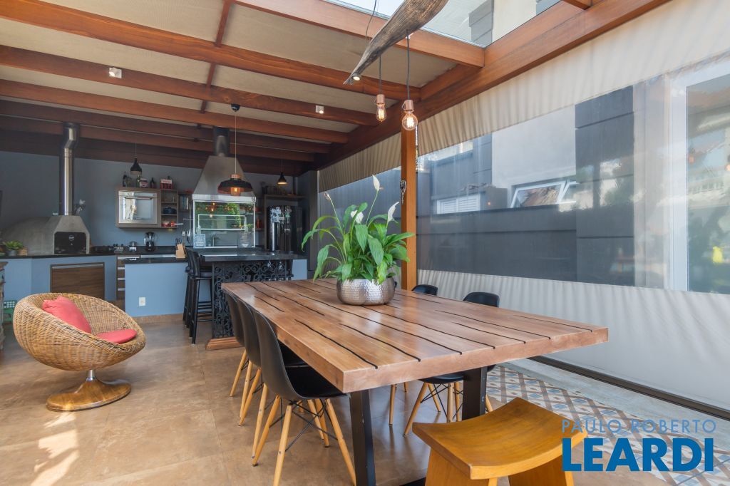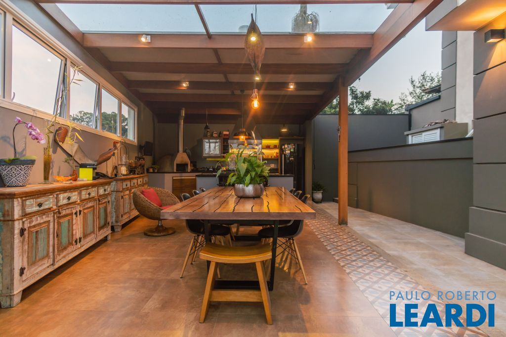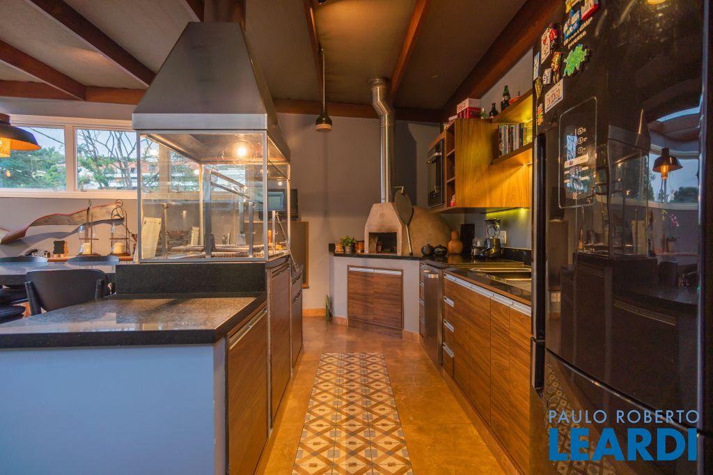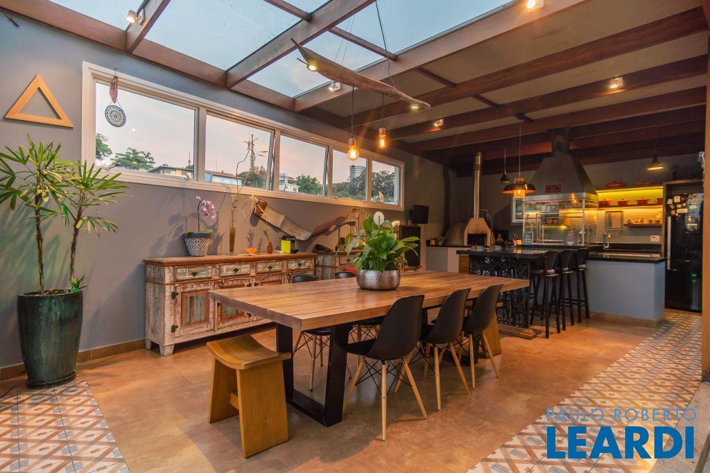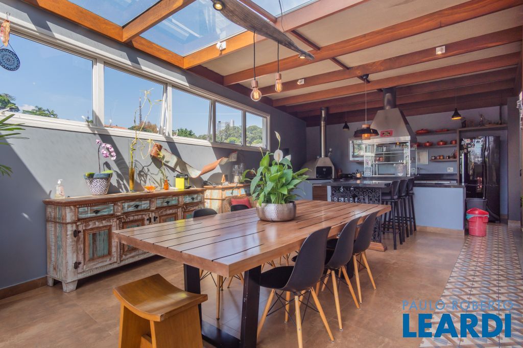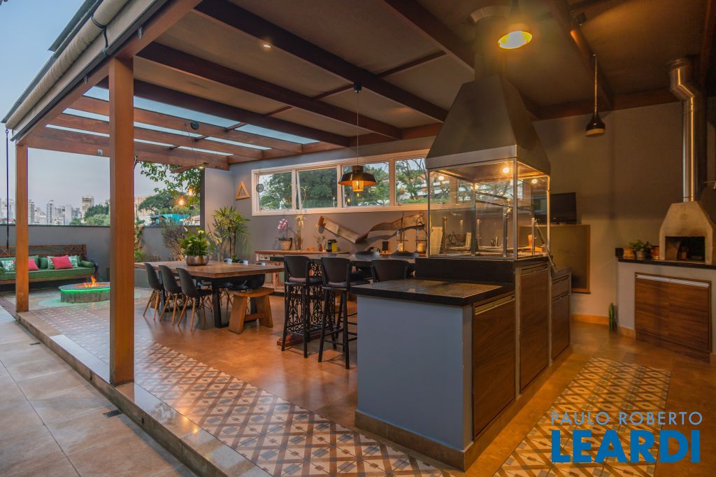 Área para adega climatizada; Sala de almoço com luz natural integrada à parte dos fundos do imóvel, com fogo de chão e integrada também a área gourmet com forno de pizza, churrasqueira e um excelente balcão com área de convivência, com uma linda vista noturna para o skyline da região da Paulista;
