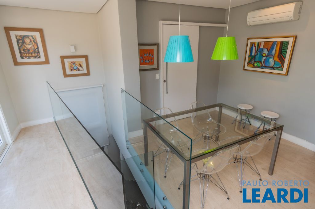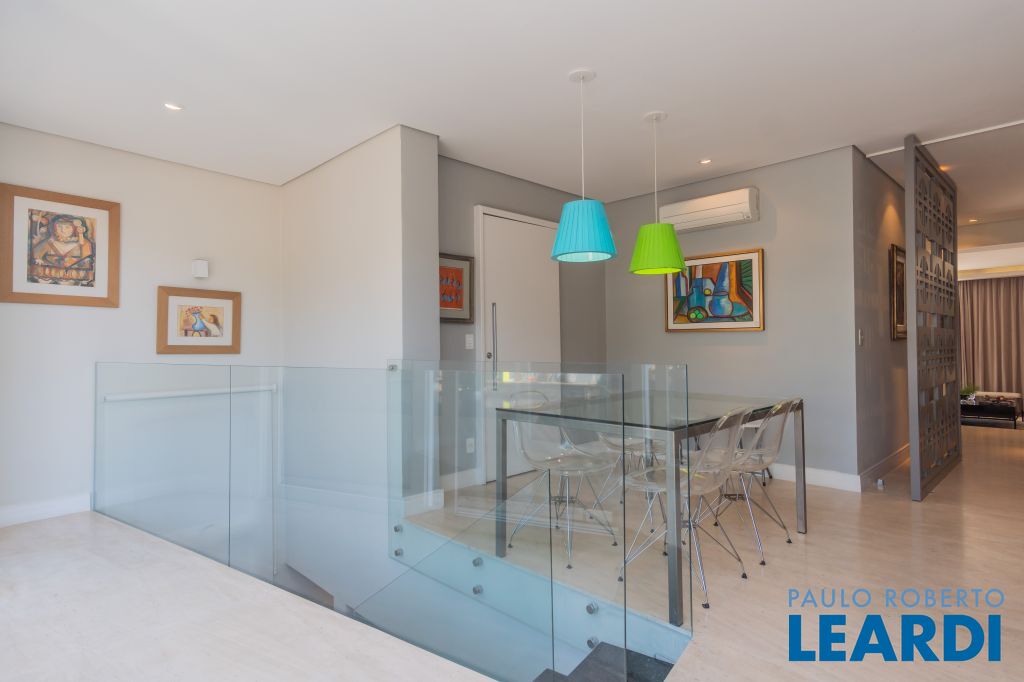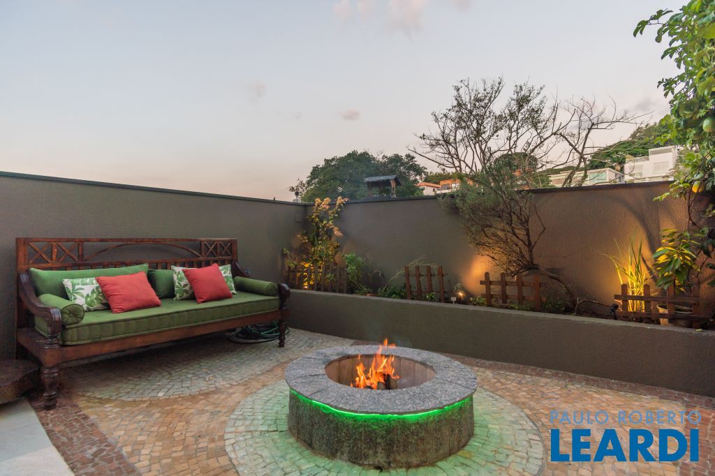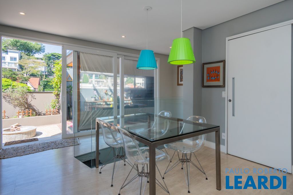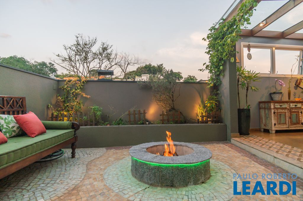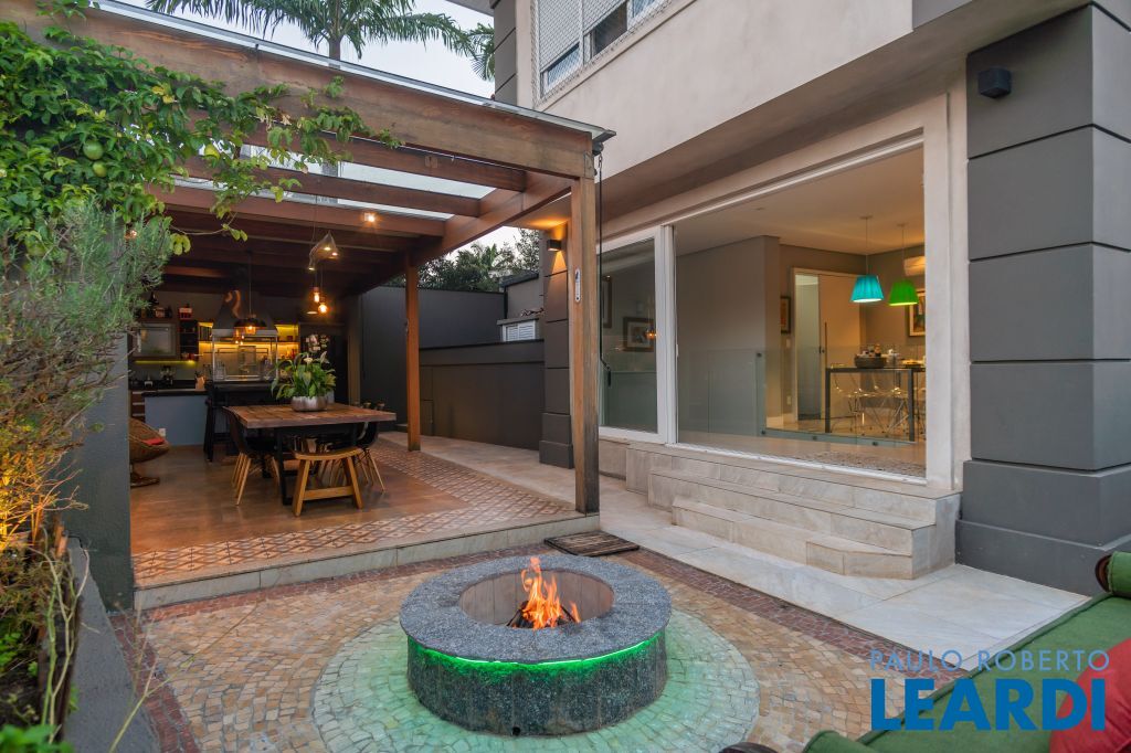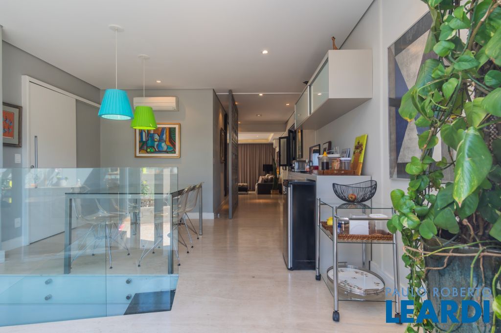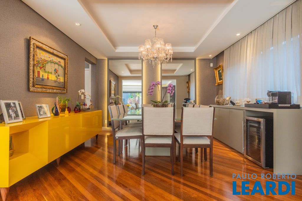 Área para adega climatizada; Sala de almoço com luz natural integrada à parte dos fundos do imóvel, com fogo de chão e integrada também a área gourmet com forno de pizza, churrasqueira e um excelente balcão com área de convivência, com uma linda vista noturna para o skyline da região da Paulista;