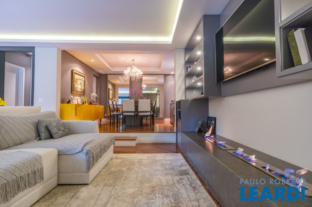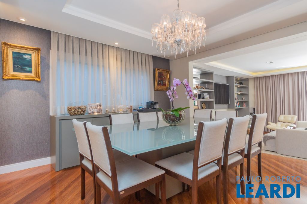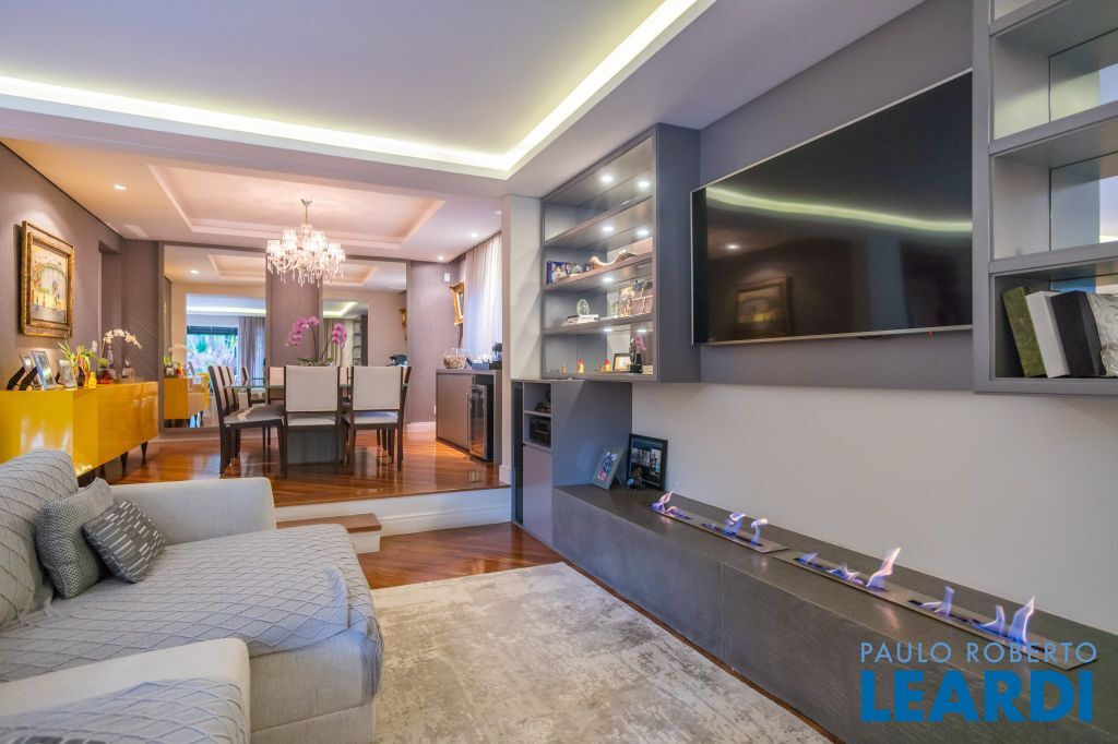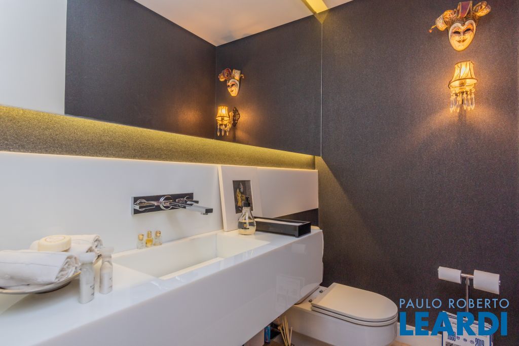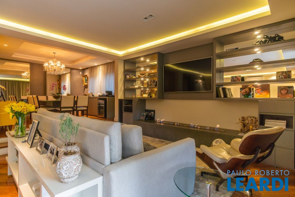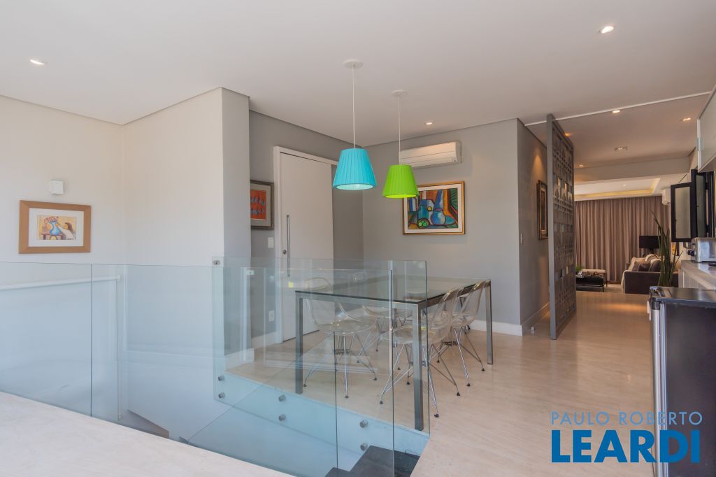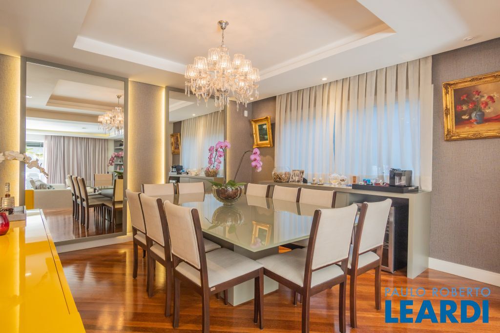 Área para adega climatizada; Sala de almoço com luz natural integrada à parte dos fundos do imóvel, com fogo de chão e integrada também a área gourmet com forno de pizza, churrasqueira e um excelente balcão com área de convivência, com uma linda vista noturna para o skyline da região da Paulista;