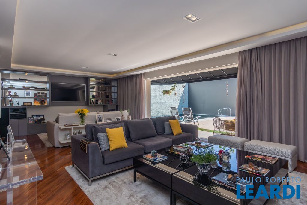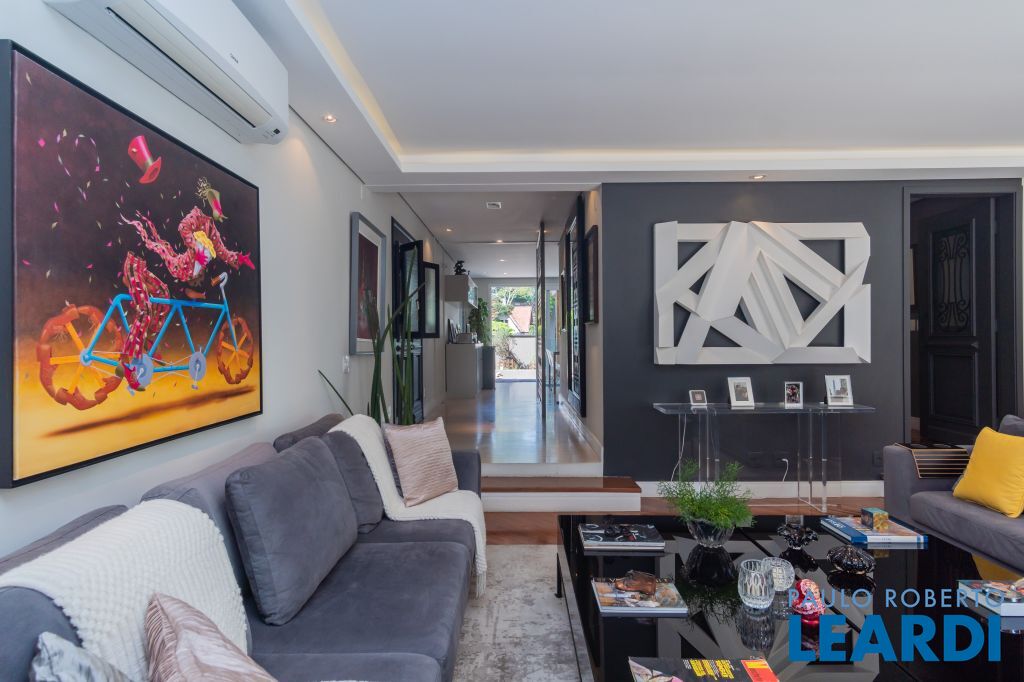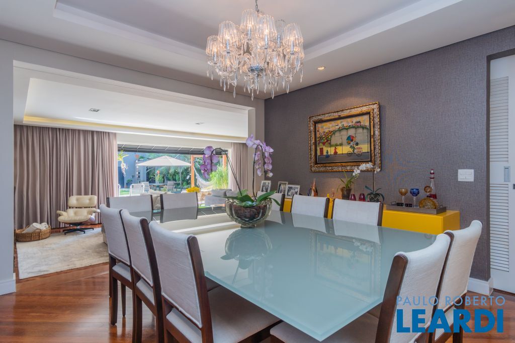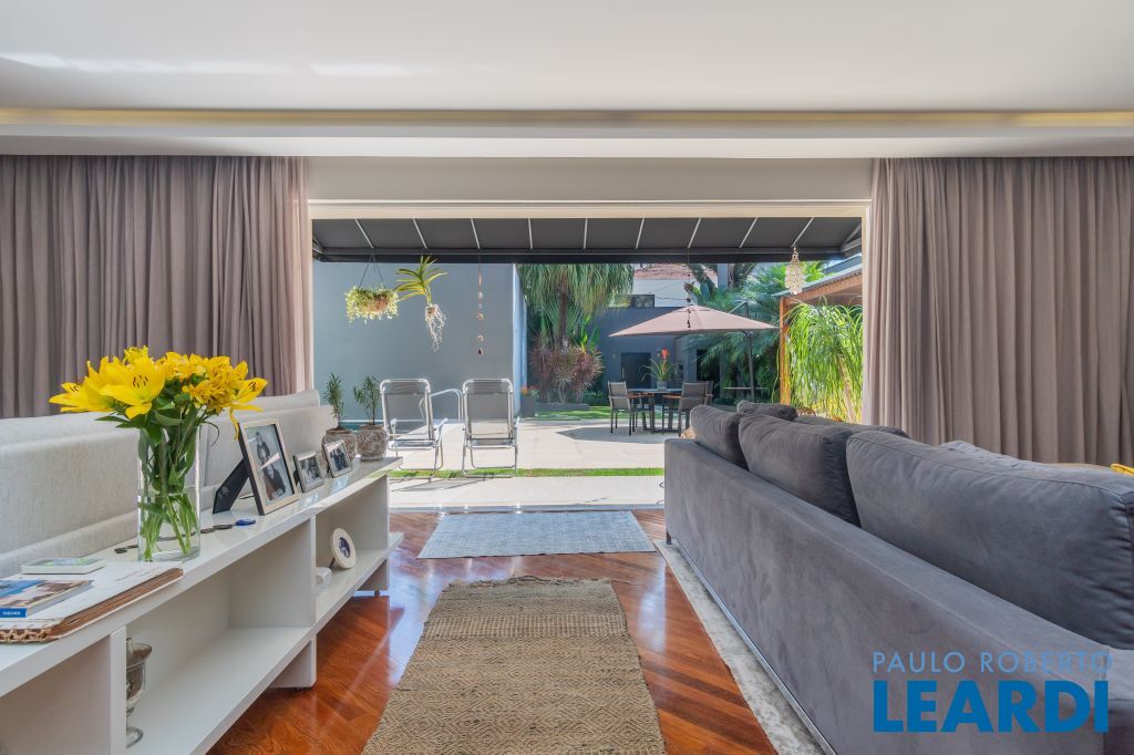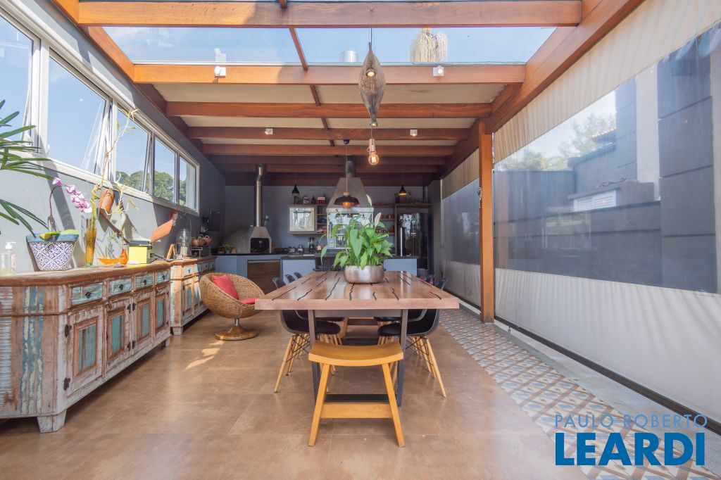 Salas integradas com uma excelente sala de jantar com móveis sob medida, living voltado para o jardim externo com ambientes de home theater e sala de estar; Porta de acesso principal em madeira de demolição; Lavabo;