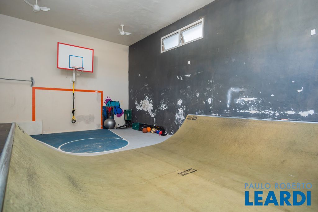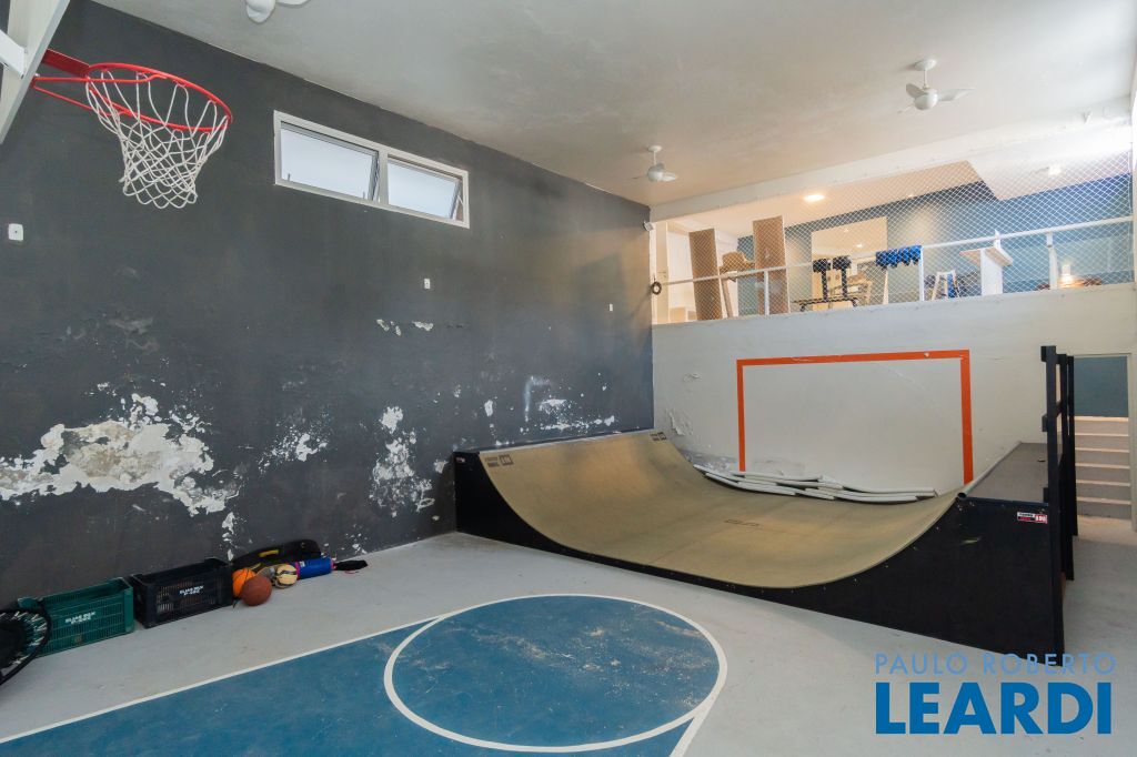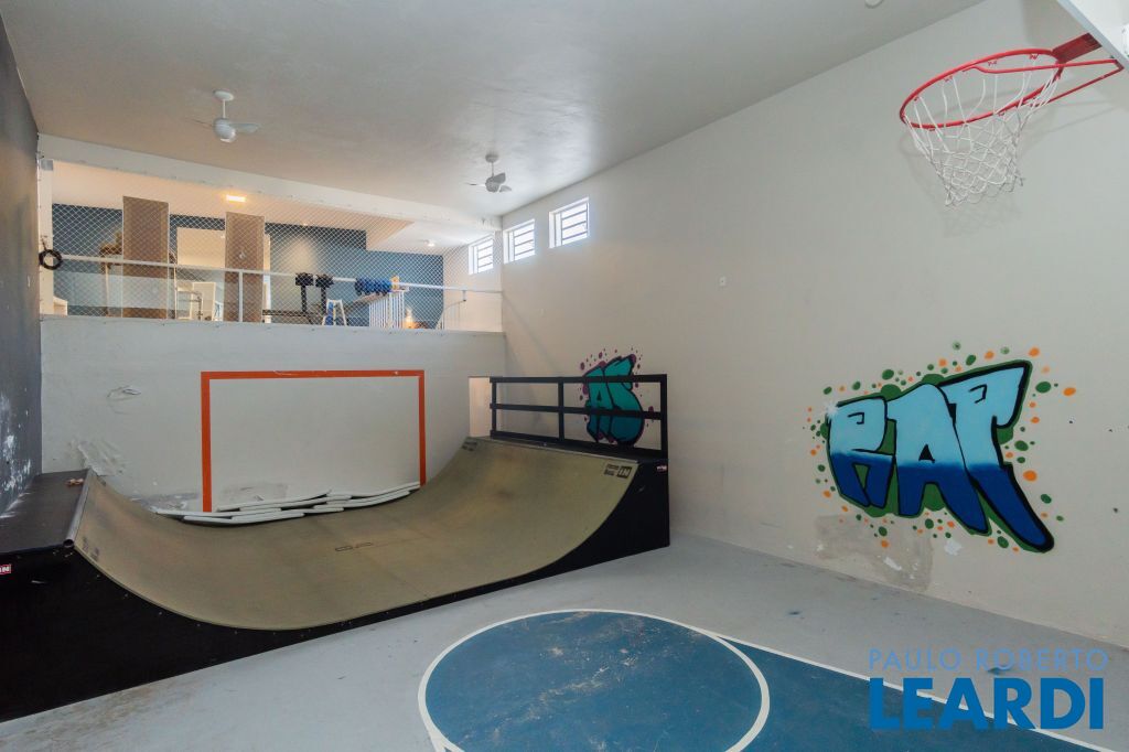 O imóvel ainda possui uma academia e uma quadra de squash (atualmente utilizada como pista de skate e área de lazer para as crianças).