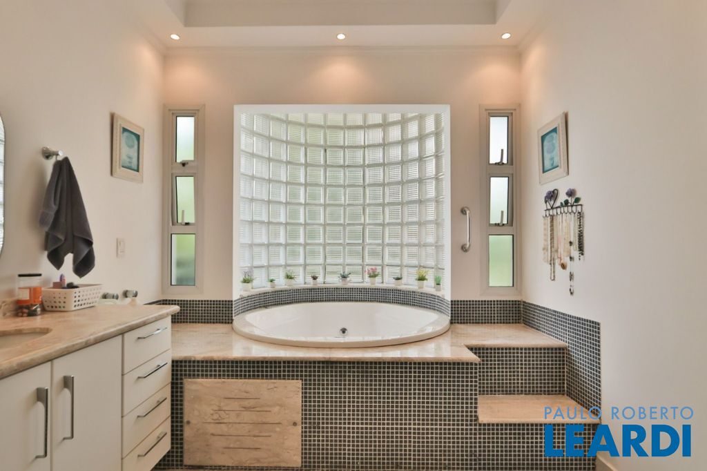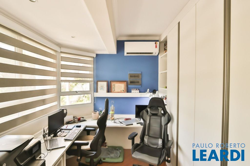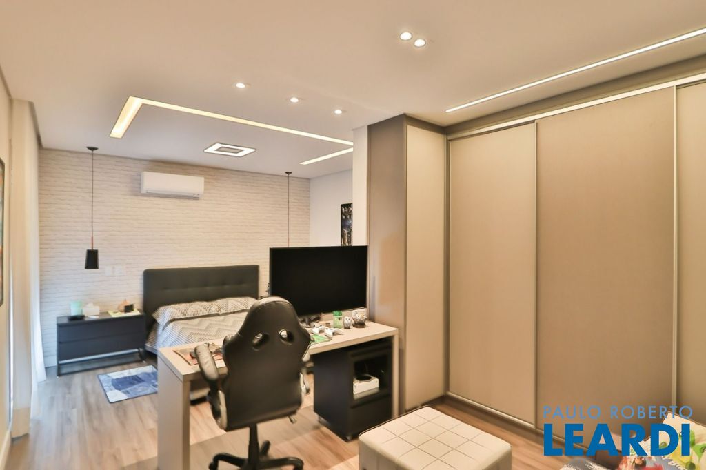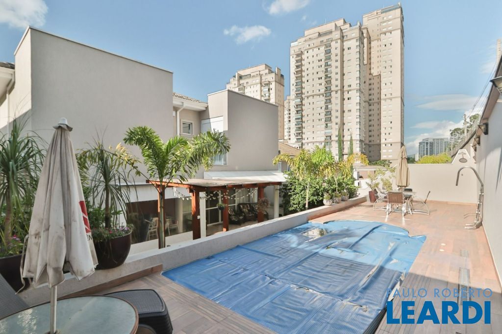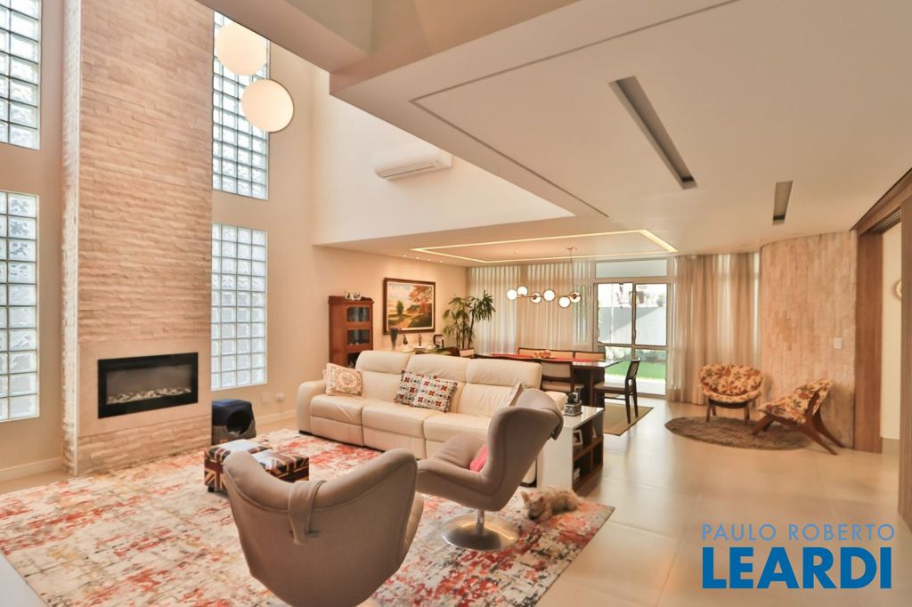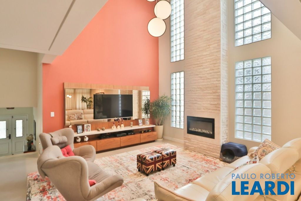 Pé direito duplo, copa, churrasqueira, escritório, lavabo, piscina.