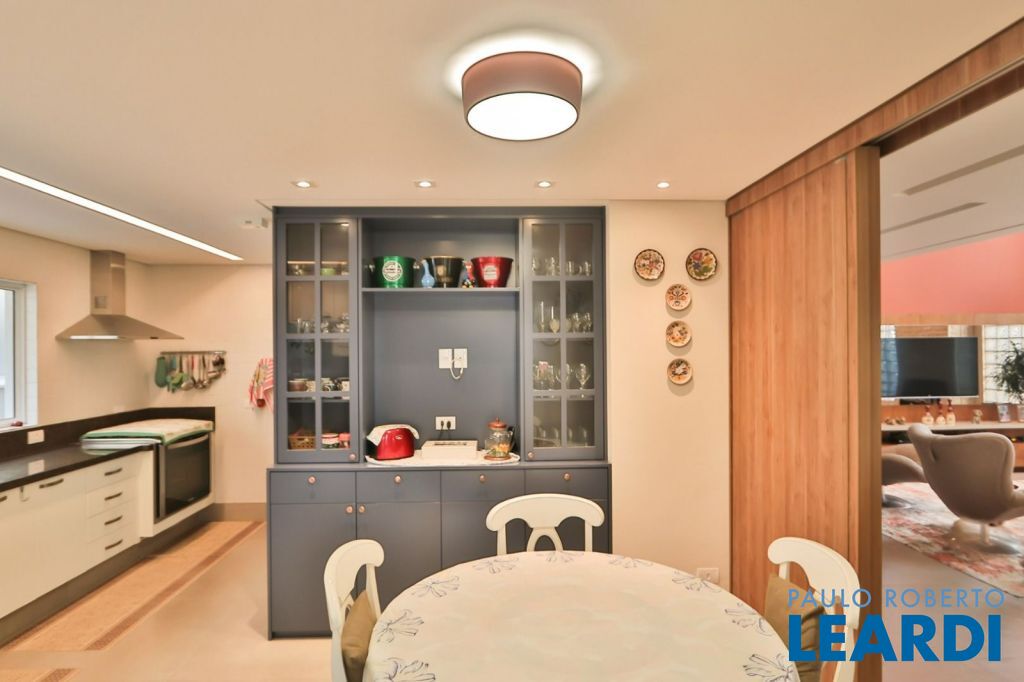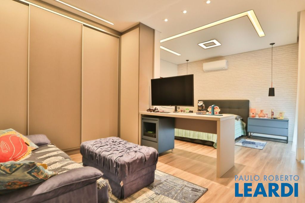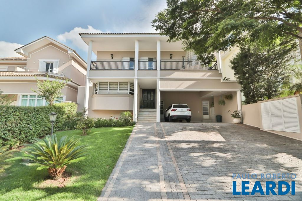 Pavimento térreo: Garagem para 4 carros. Sala principal com amplo living para diversos ambientes com total integração, 1 suíte, lavabo, cozinha, área de lazer integrada à área gourmet tendo churrasqueira e piscina, por fim área de serviço.