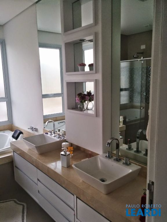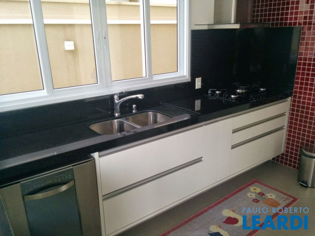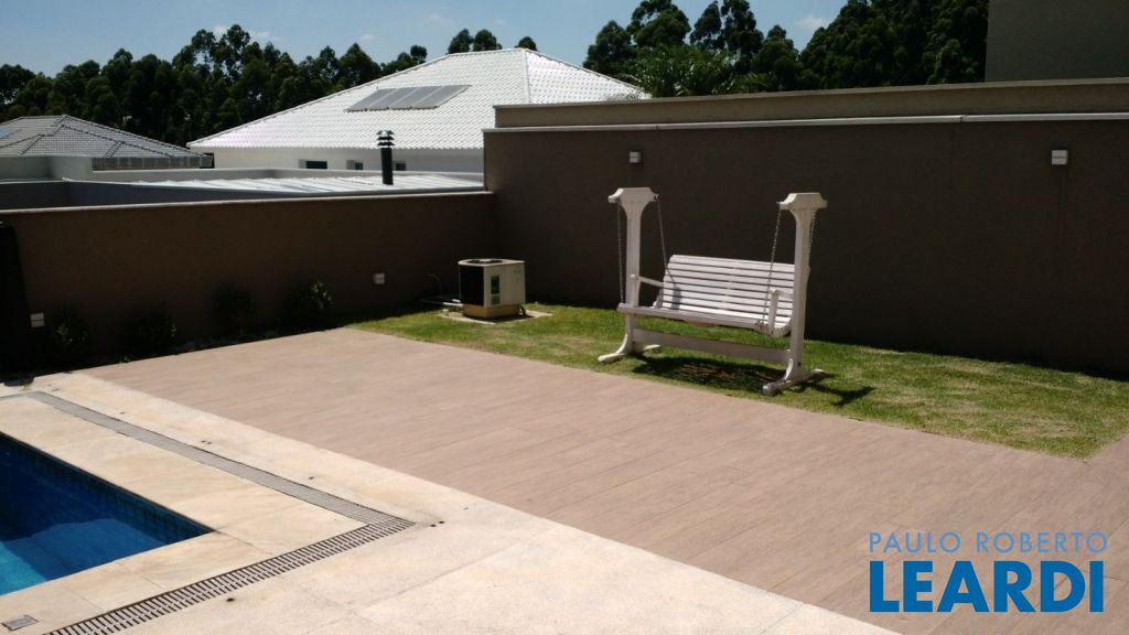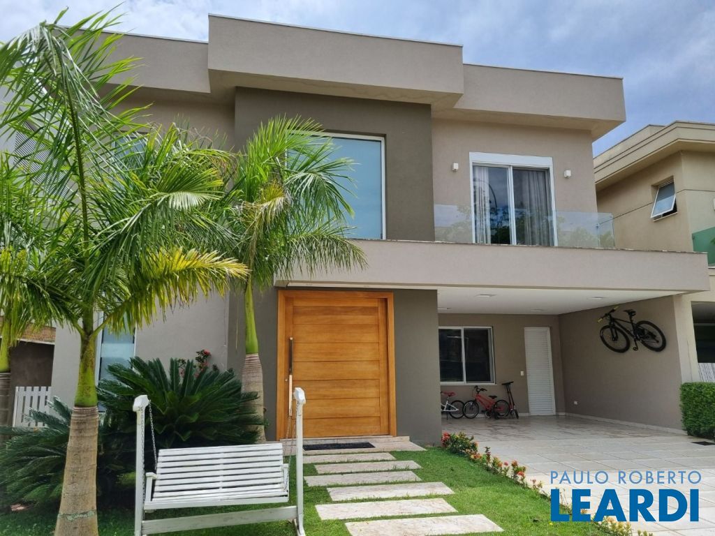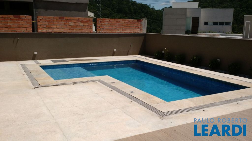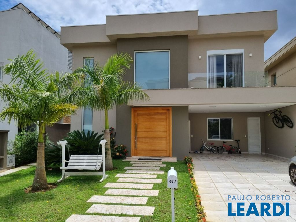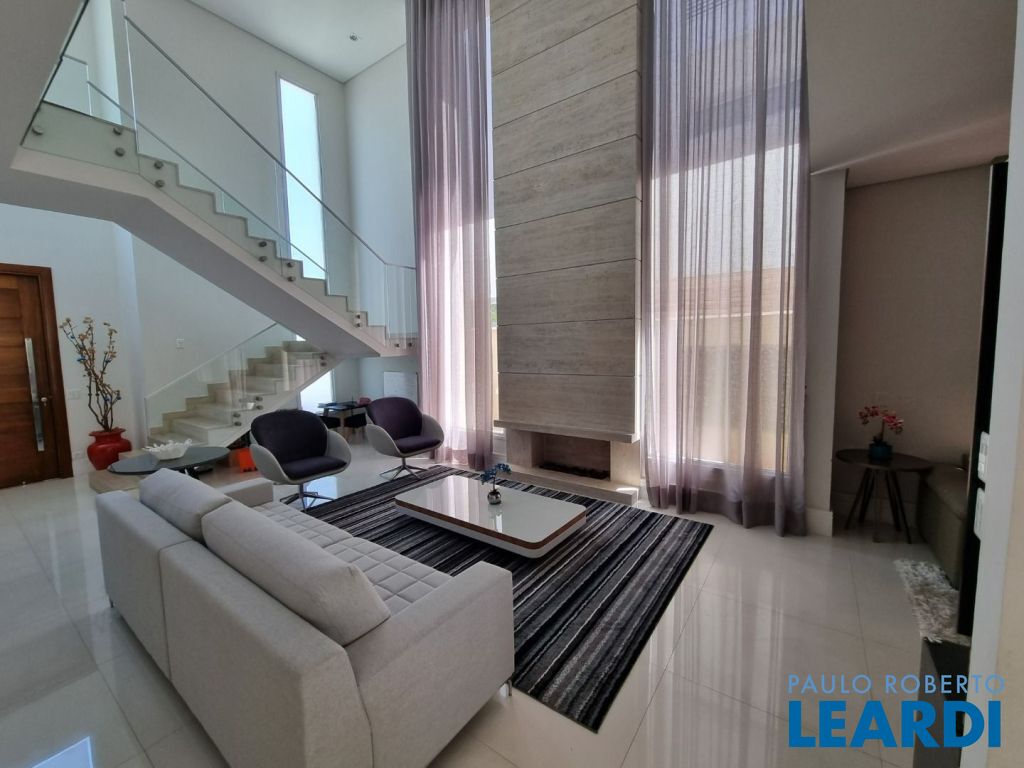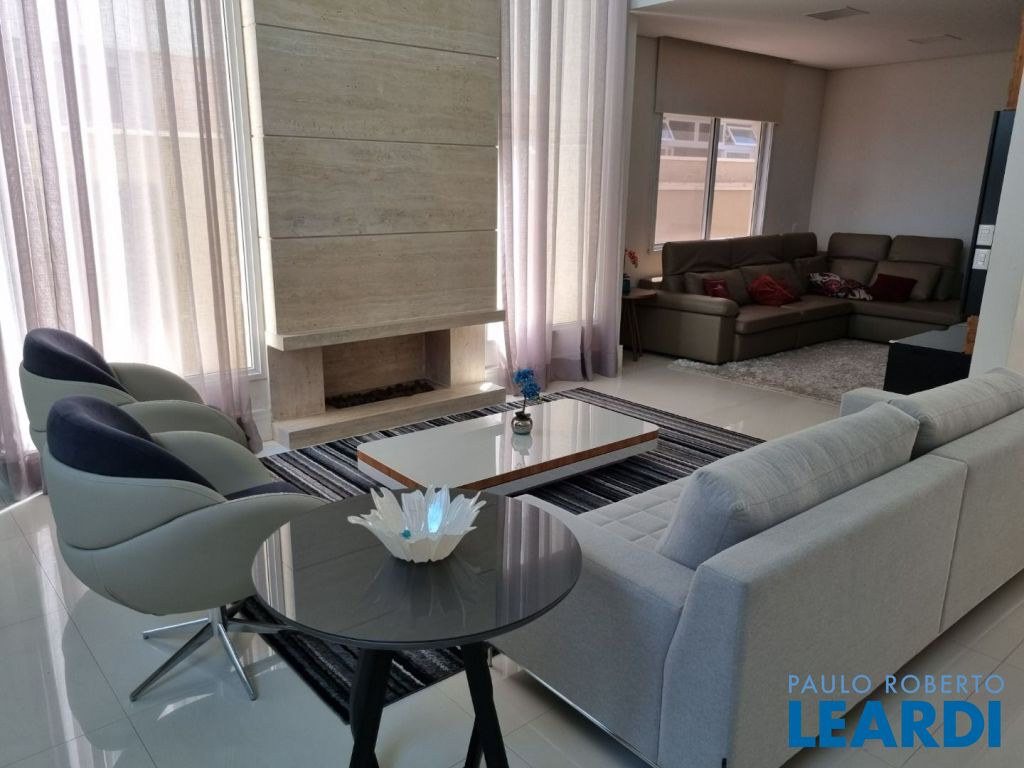 Pavimento térreo: Garagem para 4 carros. Sala principal com amplo living para diversos ambientes com total integração, lavabo, cozinha, área de lazer integrada à área gourmet tendo churrasqueira e piscina, por fim área de serviço.