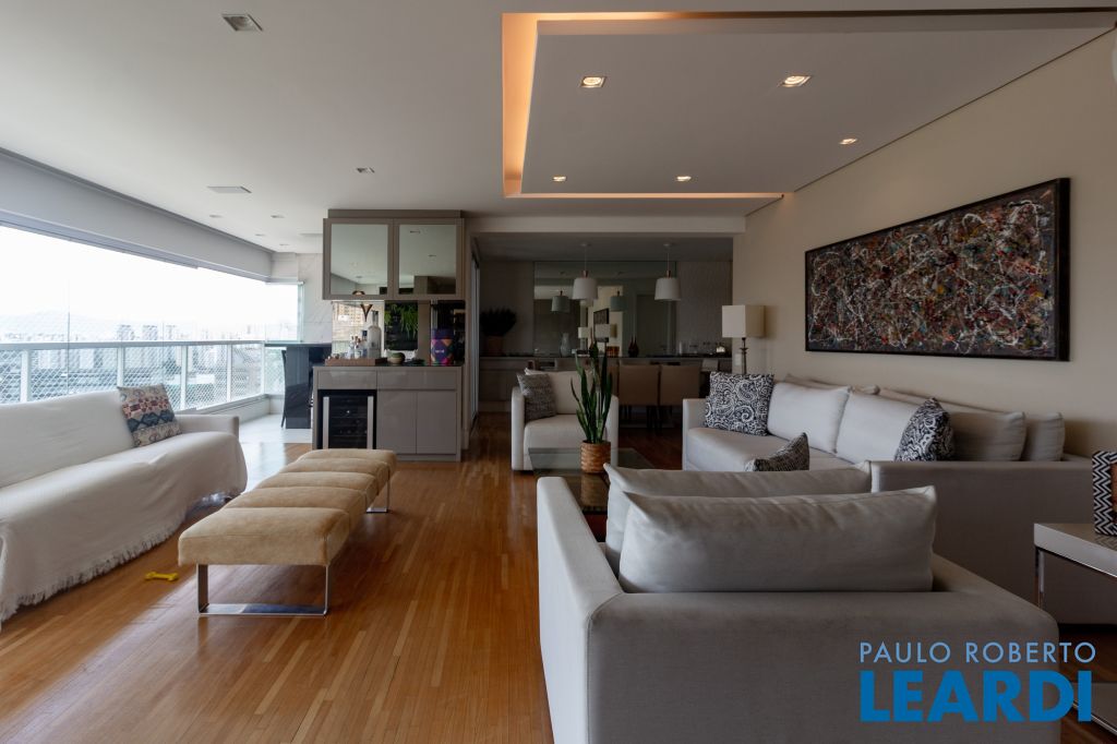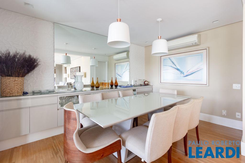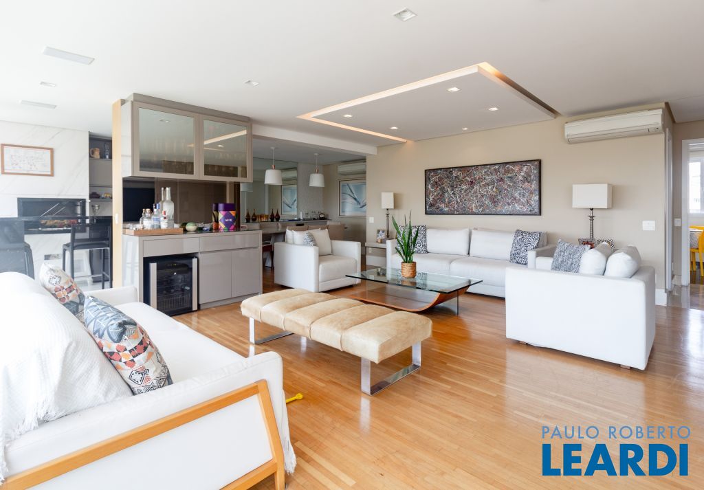 Este elegante apartamento de 255m², localizado em Perdizes, oferece três suítes espaçosas, varanda gourmet e acabamentos de alto padrão. Esta unidade apresenta um design moderno com acabamentos de primeira linha. O espaço inclui uma ampla sala de estar e jantar integradas, varanda espaçosa e cozinha equipada com eletrodomésticos modernos. A sala de TV pode ser convertida para mais uma suíte.