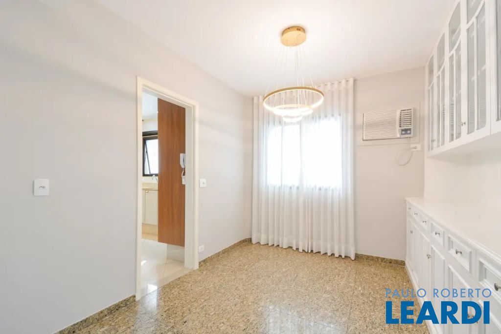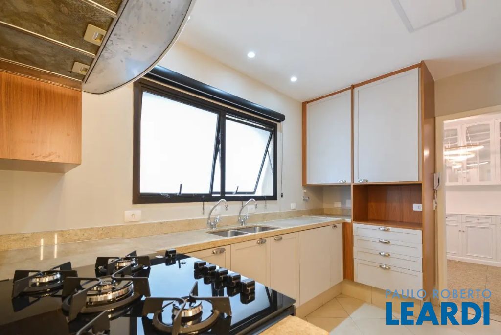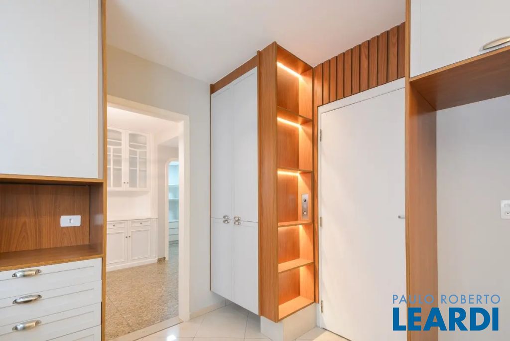 apartamento oferece 229m² de área útil e 4 vagas de garagem. Dispões de 4 quartos, sendo 3 suítes, 5 banheiros (incluindo lavabo), sala de 3 ambientes com varanda integrada, copa, cozinha, lavanderia e dependência completa de empregados, perfeitos para acomodar toda a família com conforto e privacidade. No 3º andar da esquina mais cobiçada da região, o imóvel oferece Iluminação natural de sobra que só um apartamento com disposição de 1 por andar pode oferecer: Sol da manhã nos quartos e sol da tarde na sala, além da vista para a copa das árvores . hall de entrada privativo e, ao entrar, será recebido por uma impressionante sala de estar com iluminação natural que entra pelas grandes janelas com vistas abertas e piso de madeira natural. A cozinha recentemente modernizada, anexa à copa, está equipada com armários embutidos e oferece um espaço perfeito para todas as suas aventuras culinárias.