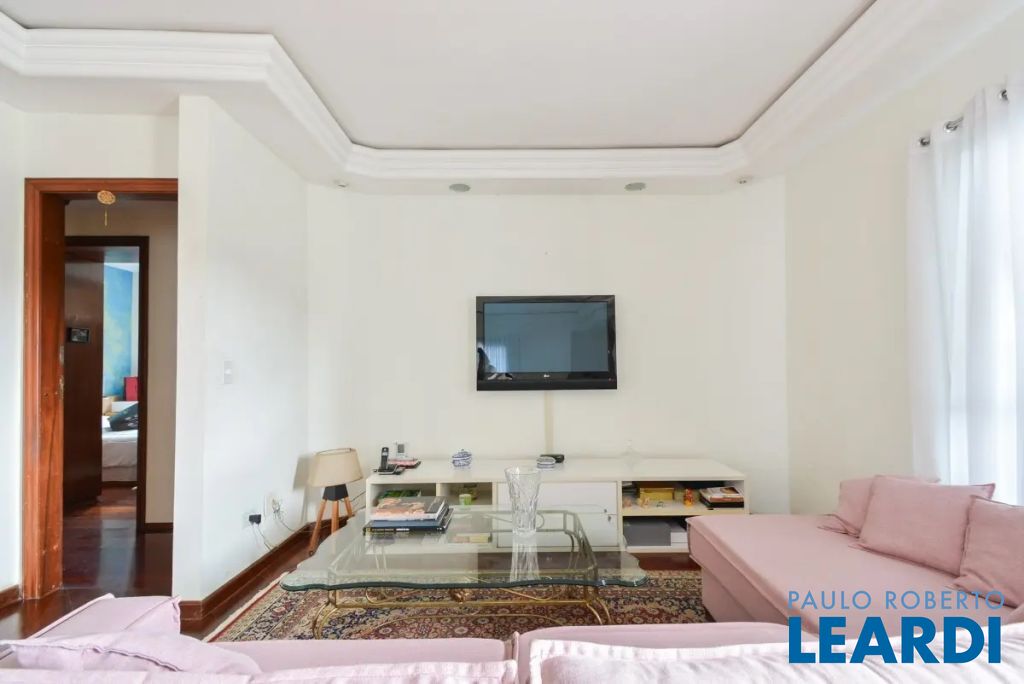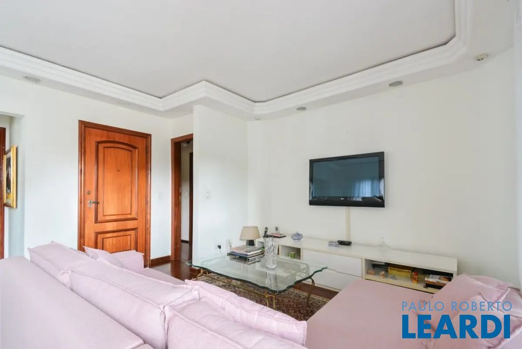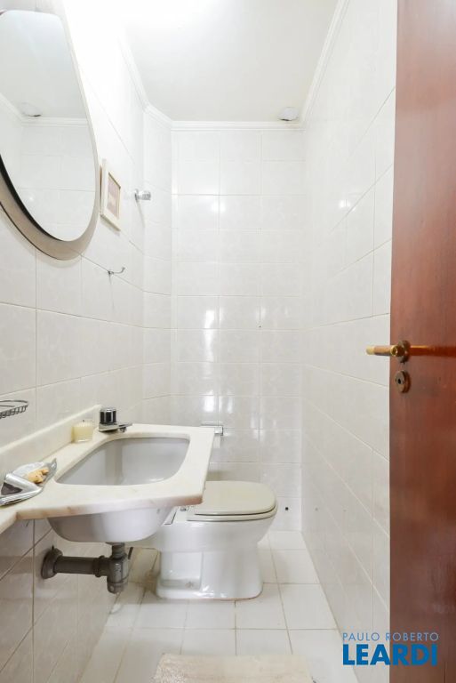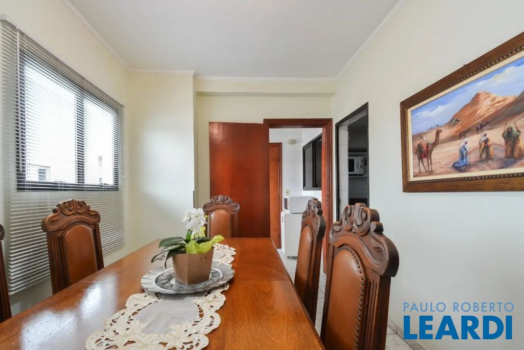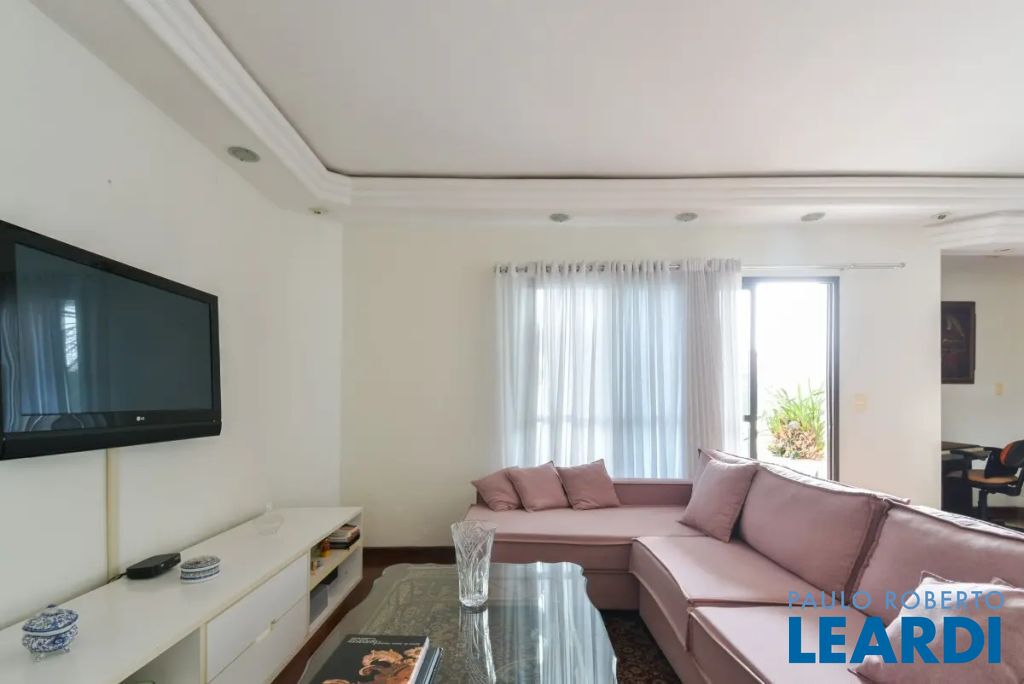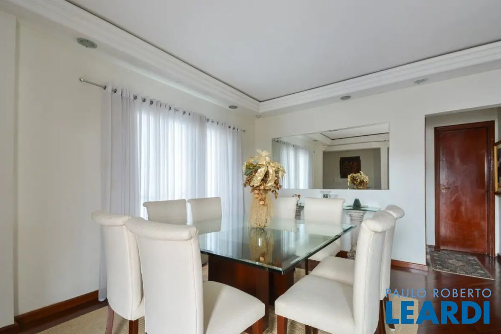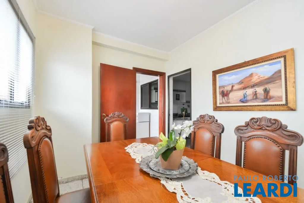 O imóvel conta com três suítes, quatro banheiros e duas vagas de garagem determinadas. As características incluem água quente, área de serviço, interfone, lavabo, móveis planejados, piso de madeira e sacada.
