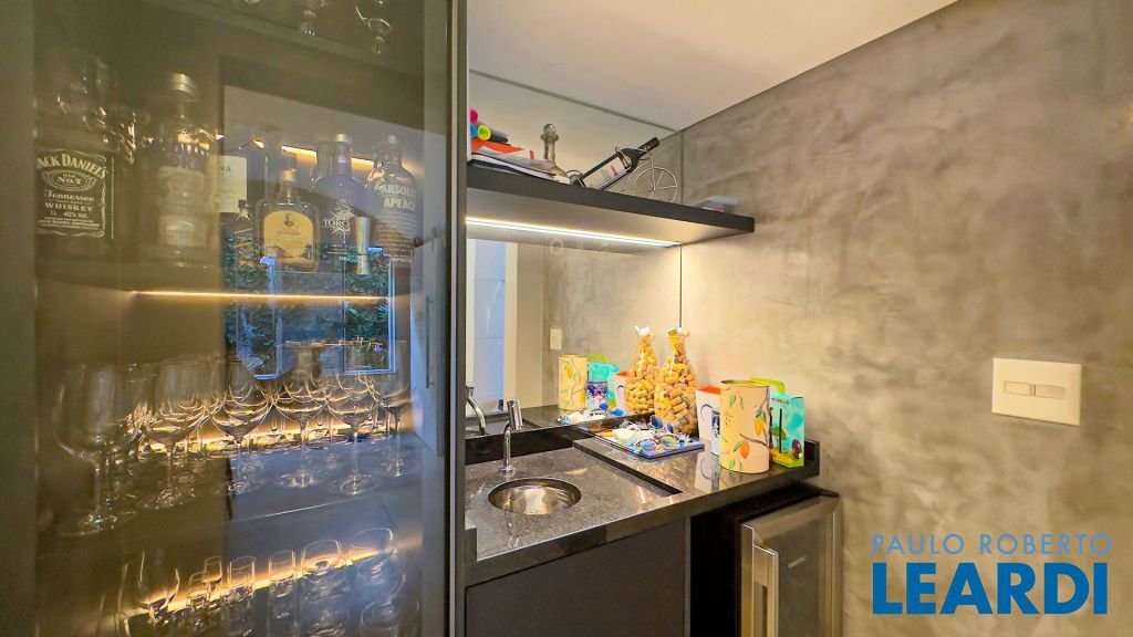 Área gourmet com churrasqueira à gás integrada com à piscina