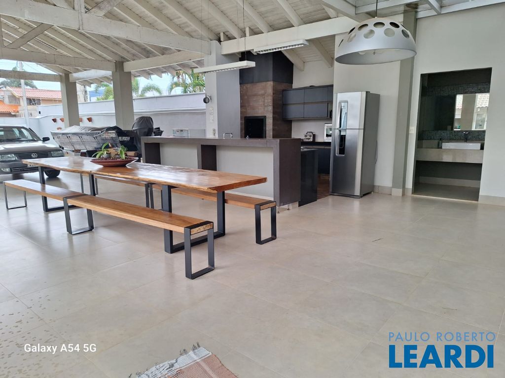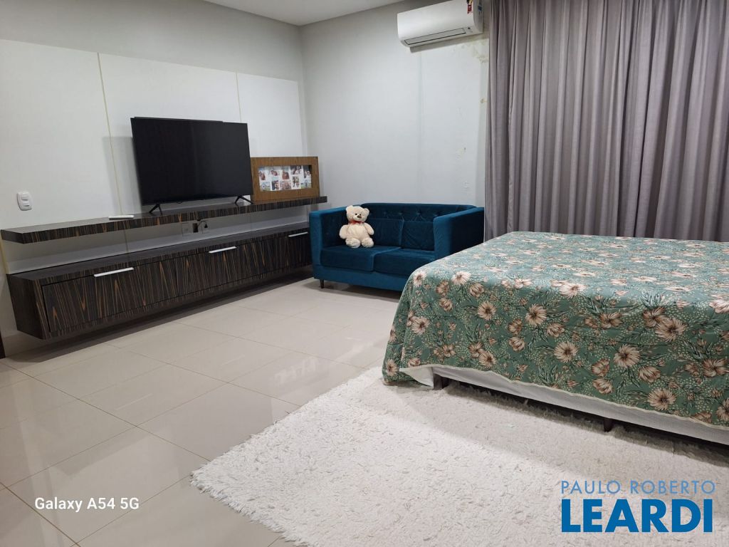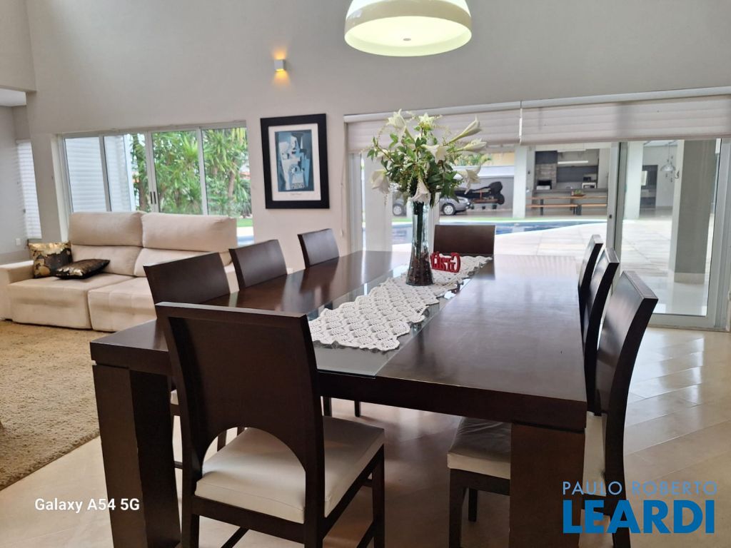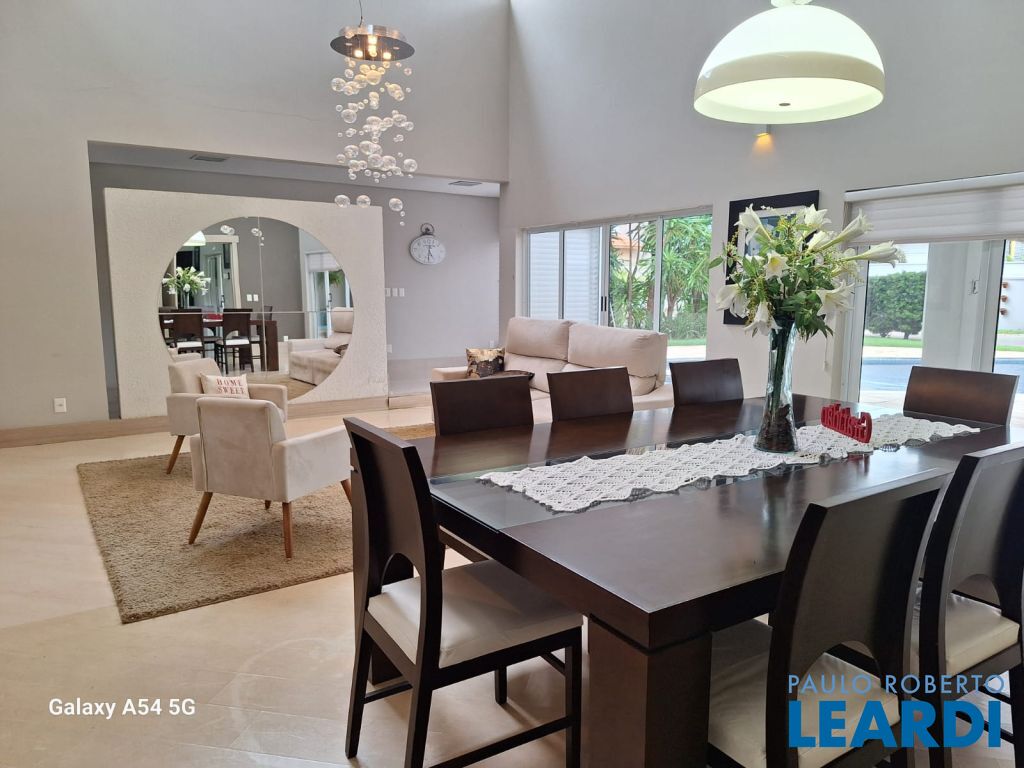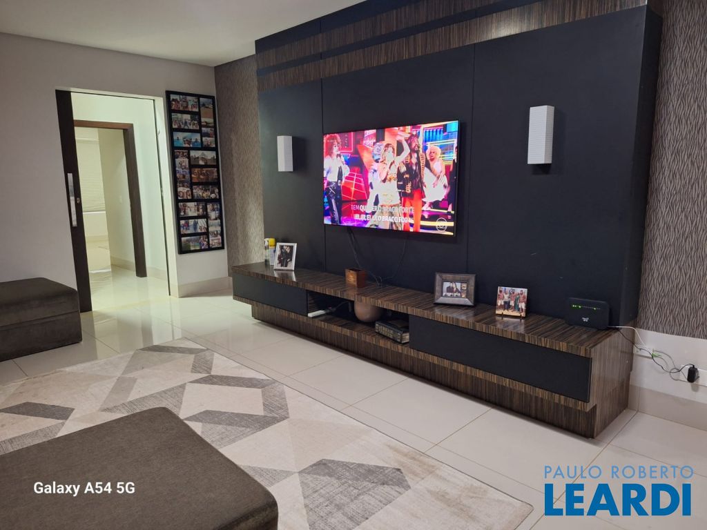 Ambientes sociais incluem uma sala de estar elegante, sala de jantar, e uma sala home para entretenimento, além de um escritório ideal para trabalho ou estudos. A cozinha interna é equipada com móveis planejados, trazendo praticidade e design refinado ao dia a dia. Para lazer e descontração, a casa oferece um espaço de jogos e um espaço de convivência completo com churrasqueira e piscina, ideal para receber amigos e familiares.