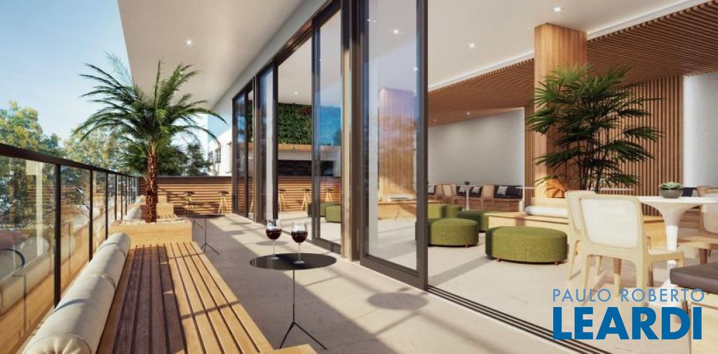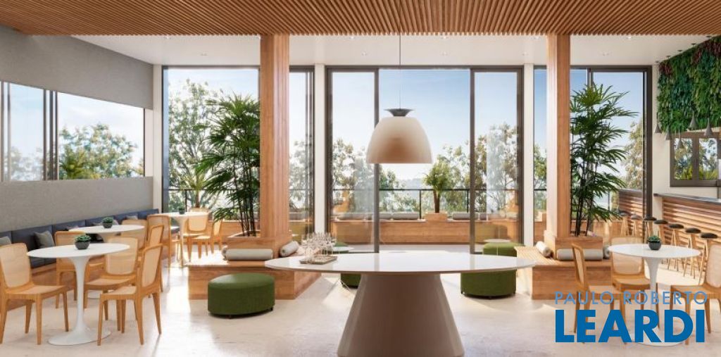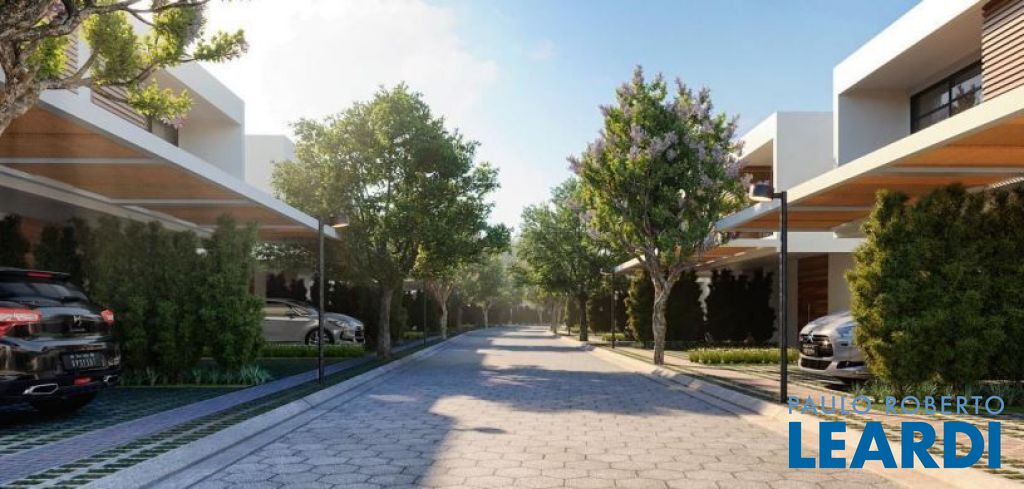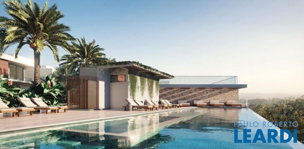 Pavimento térreo: Garagem para 2 carros. Sala principal com amplo living para diversos ambientes com total integração, lavabo, cozinha, área de lazer integrada à área gourmet tendo churrasqueira e piscina, e área de serviço.