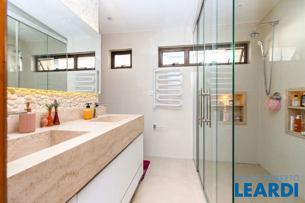Na entrada da garagem, portão automático, com sistema de monitoramento, temos espaço para estacionar 4 carros com folga, na entrada da casa, temos um quarto que pode ser usado de dispensa ou escritório, ao subir as escadas nos deparamos com um corredor que dá acesso a um lavabo, cozinha, sala de jantar e sala de estar integrados, em um nível elevado temos outra ampla sala com varanda que dá acesso a área de serviço com armários planejados e área privativa.