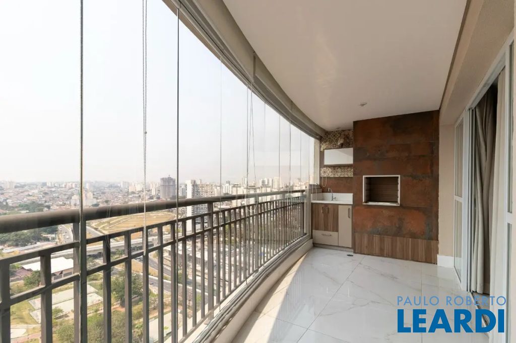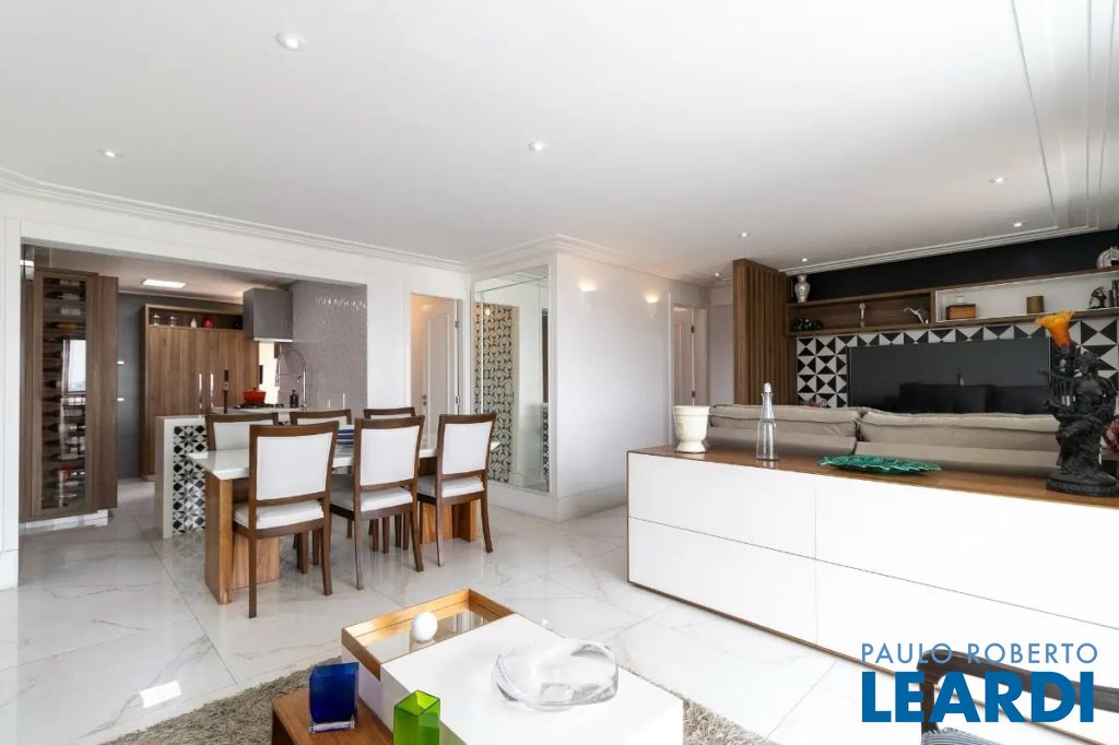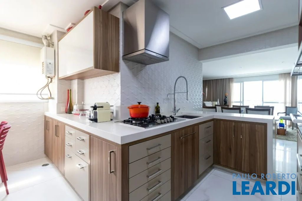 Apartamento com 3 suítes, 4 banheiros, 2 vagas de garagem determinadas, área de serviço, cozinha integrada, infraestrutura para ar-condicionado, churrasqueira, lavabo, móveis planejados, piso porcelanato e de madeira, interfone, água quente, sacada e copa.