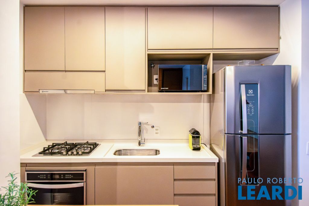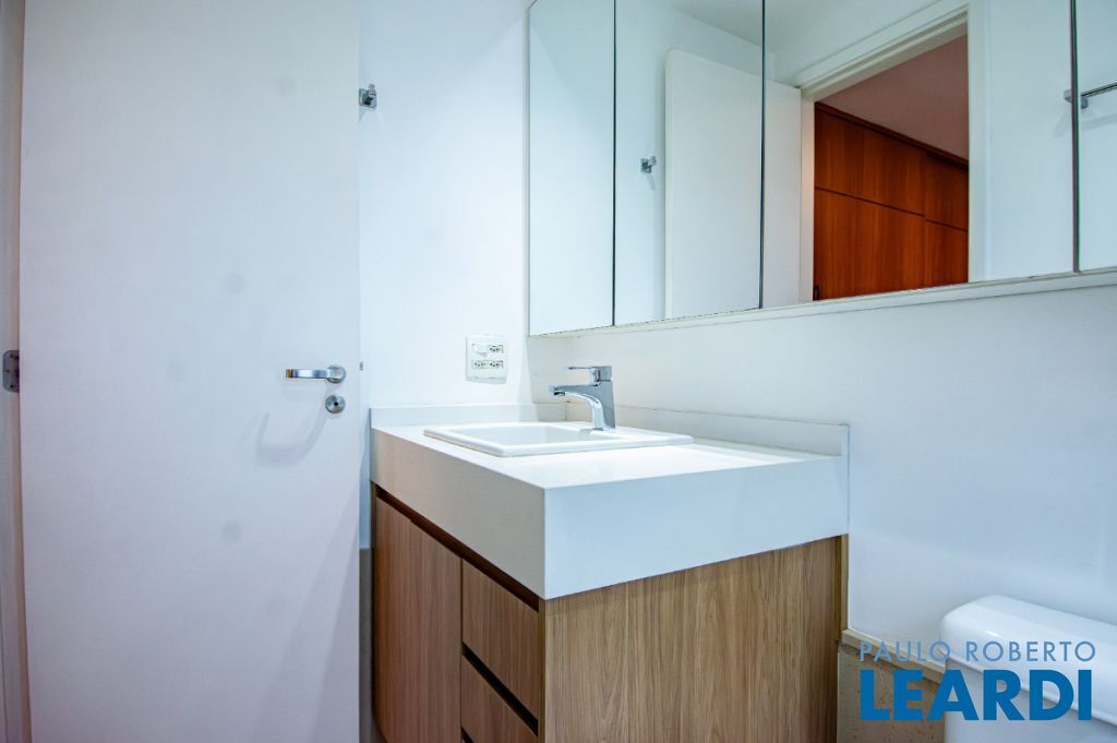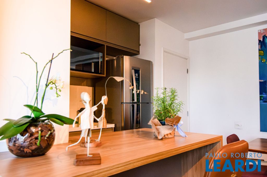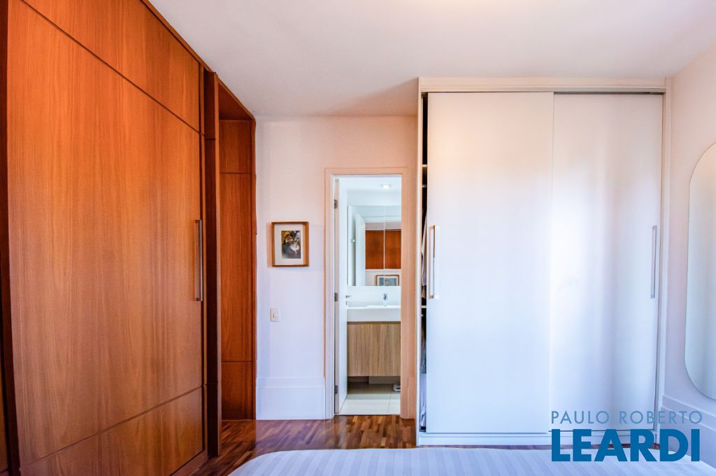 Possui piso de madeira nobre, armários planejados novos e de alta qualidade em todos os ambientes, janela antirruído na suíte para noites tranquilas e ar condicionado quente e frio tanto na sala quanto no quarto. O lavabo decorado com muito bom gosto é um charme à parte.