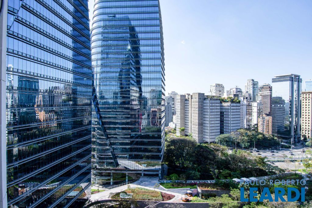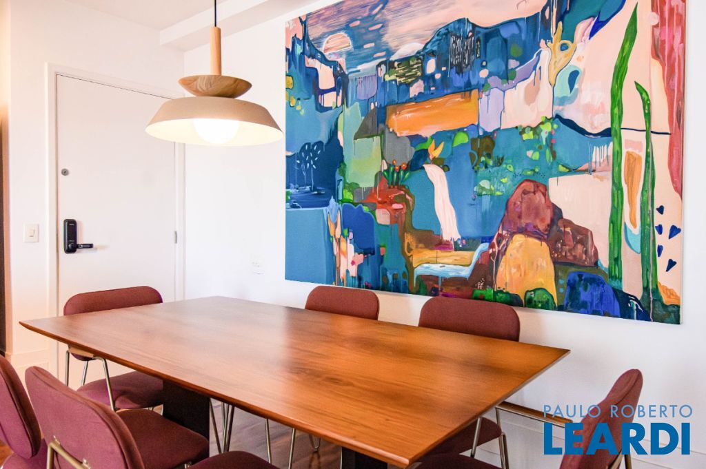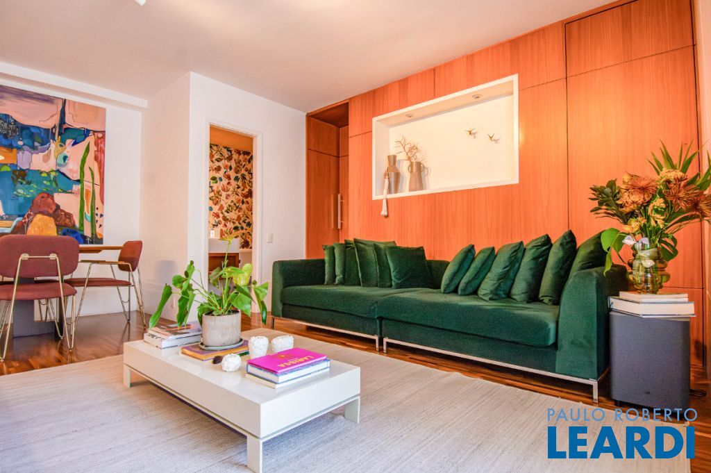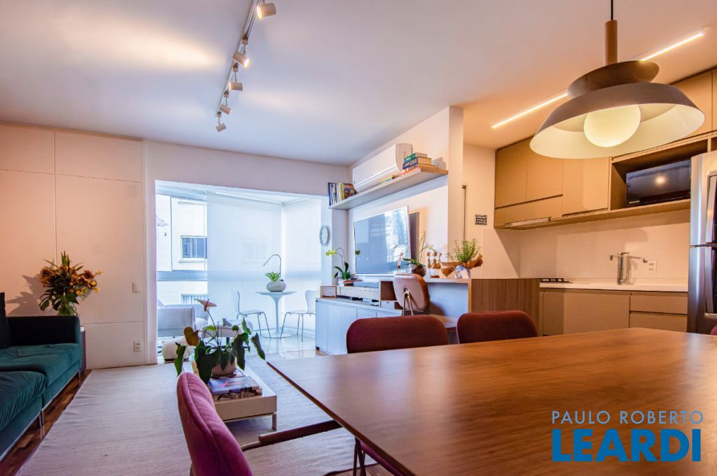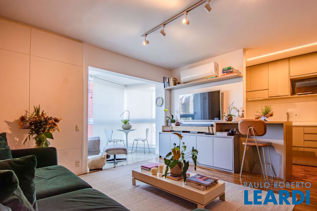 A planta original de dois dormitórios foi adaptada para ampliar a área social, deixando a sala mais espaçosa. A vista é simplesmente encantadora, com o verde do jardim dos prédios da XP (antiga Camargo Corrêa) bem à sua frente.