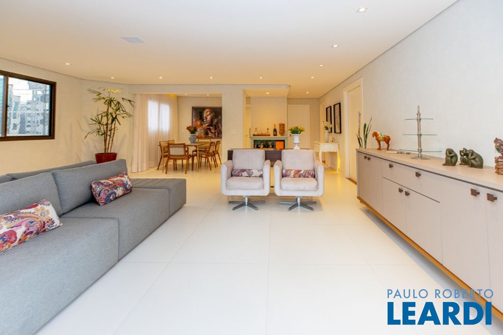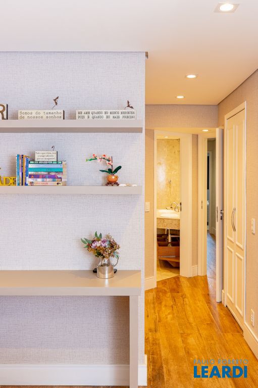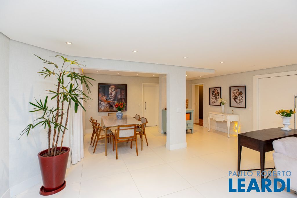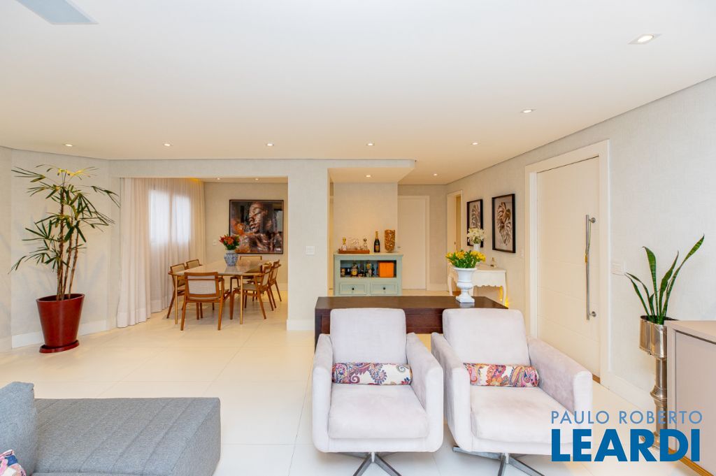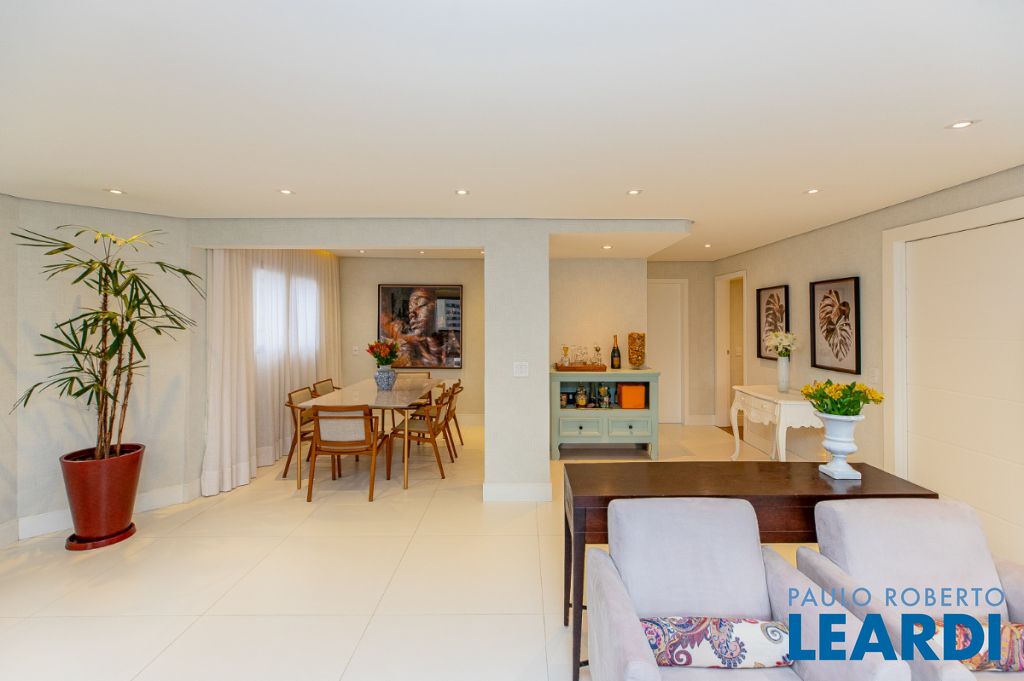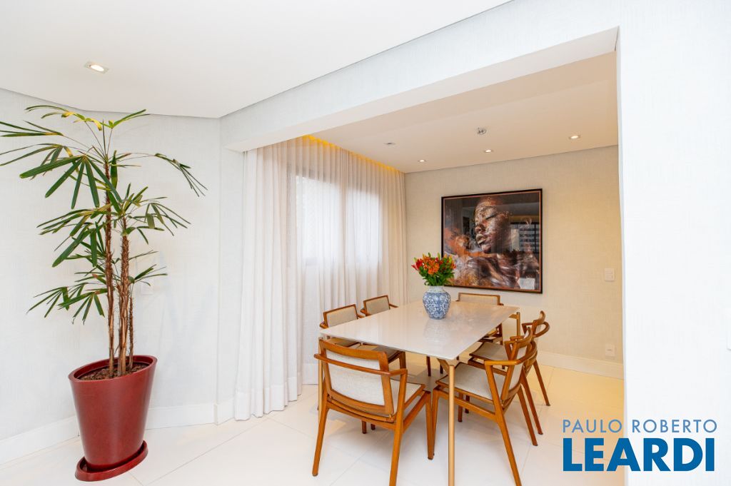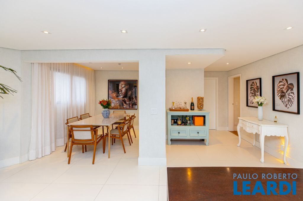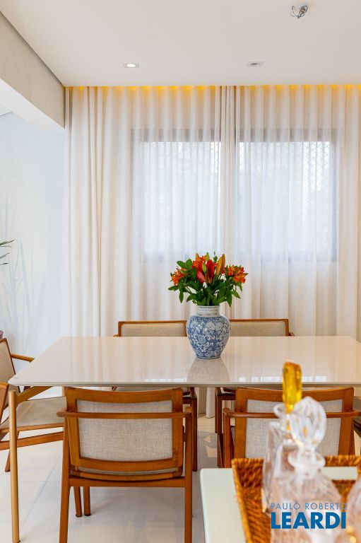 O requinte se inicia logo na entrada por um amplo living clássico com excelente iluminação natural e um jogo de luzes ambientes em cada espaço oferecendo um especial aconchego. A sala de jantar se comunica com uma bela cozinha, equipada com armários planejados de nobre marcenaria!