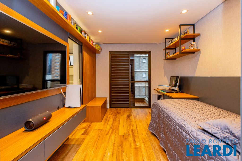 São 197 m², com 4 dormitórios (3 suítes), 5 banheiros, e foi cuidadosamente projetado para proporcionar o máximo de conforto e praticidade. A área de serviço do apartamento destaca-se por ser espaçosa e completa, ótima ventilação na lavanderia e com dependência de empregada completa com 2 quartos e um banheiro.