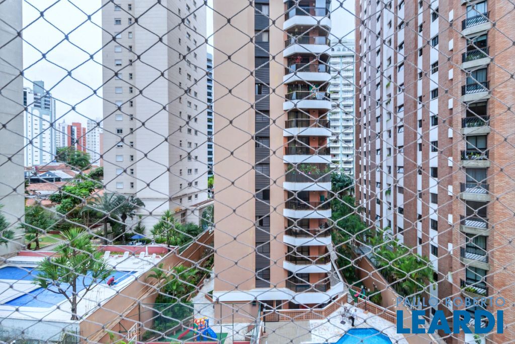 O Edifício Ibirapuera oferece portaria 24 horas, bicicletário, jardim, elevador e salão de festas, garantindo segurança e lazer.