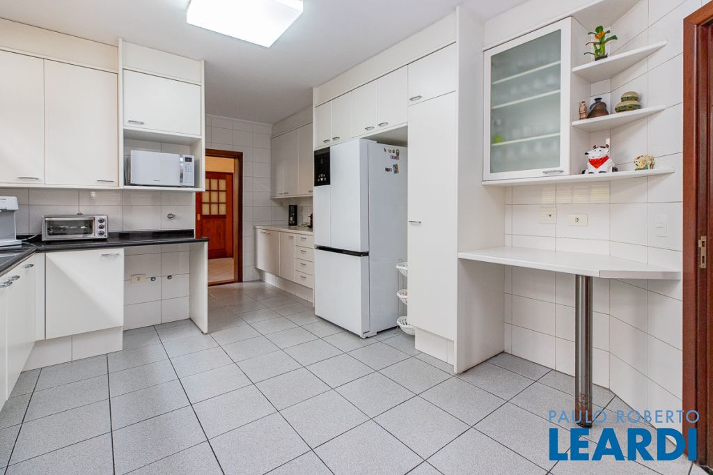 A cozinha, integrada à copa e à despensa, traduz praticidade no dia a dia, ampla e bem iluminada.