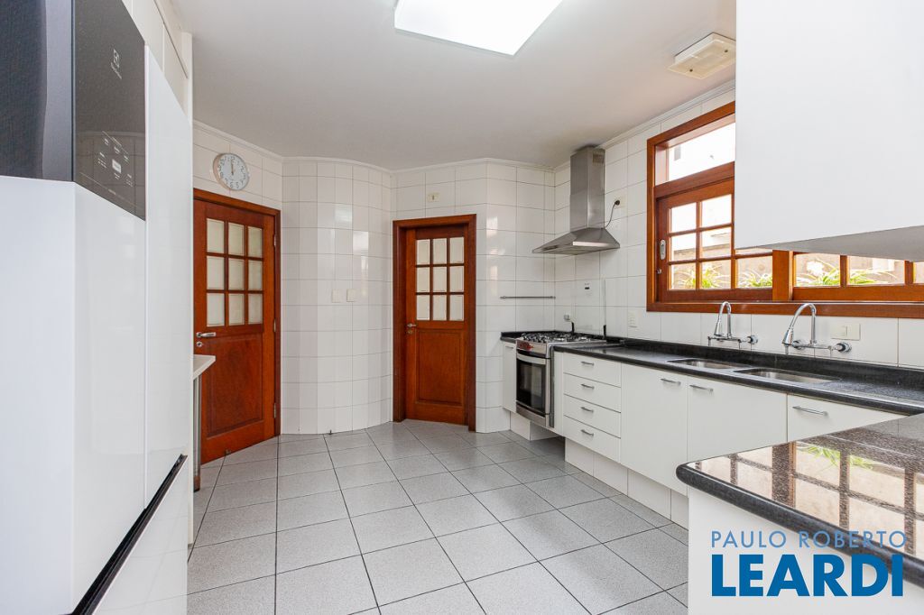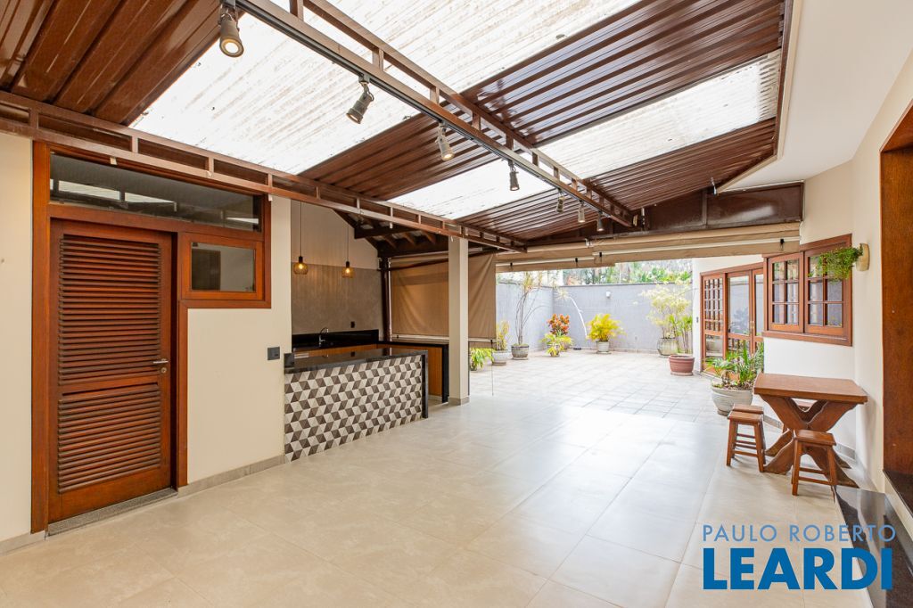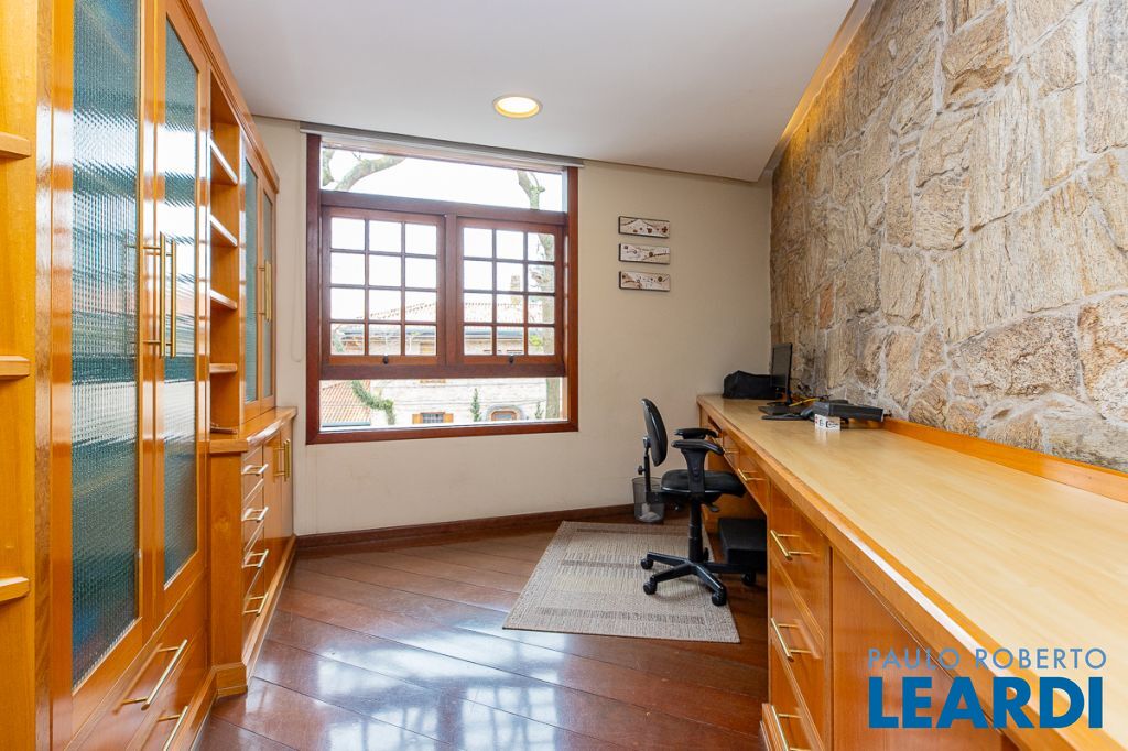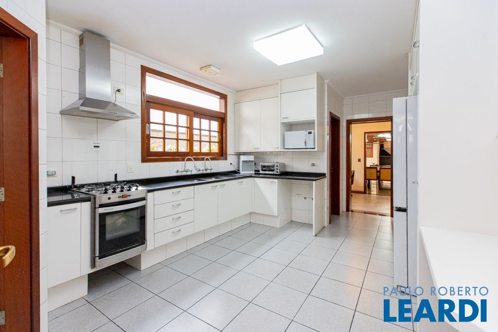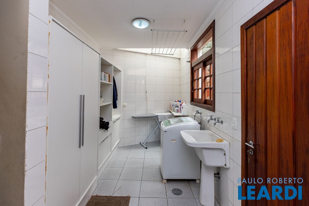 A casa ainda conta com lavanderia, dependência completa de empregada, com acesso independente, depósito, cômodo multiuso e três vagas.