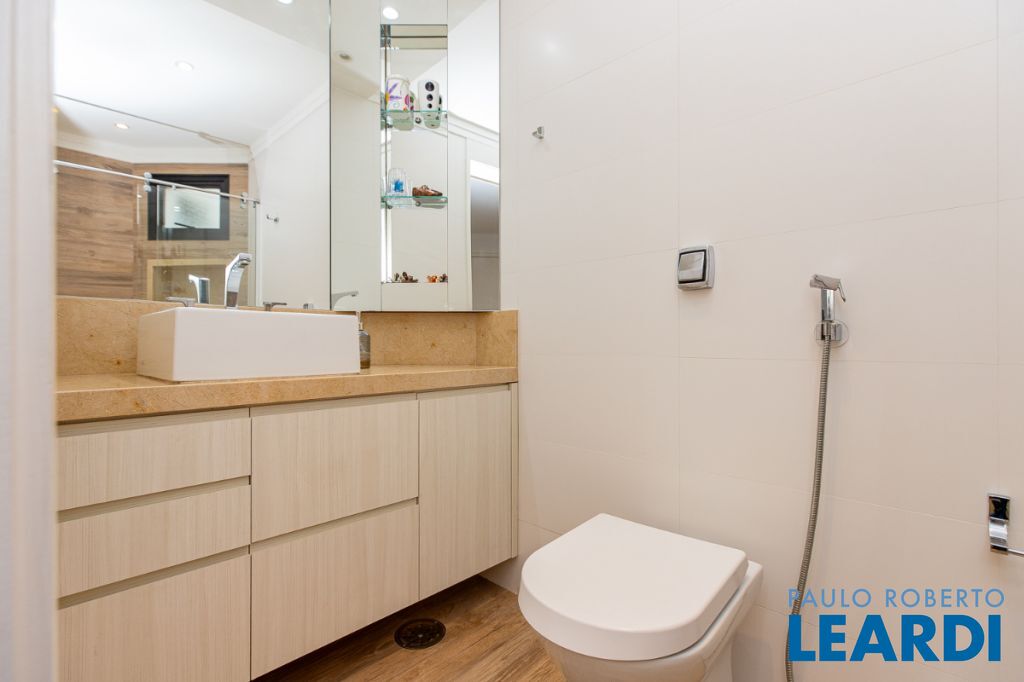 São 3 quartos sendo 3 suítes, ideal para famílias que buscam privacidade e praticidade. O apartamento possui 5 banheiros, garantindo conforto para todos os moradores e visitantes. Conta também com um lavabo, além de estar equipado com água quente, gás encanado e ar-condicionado central.