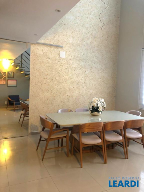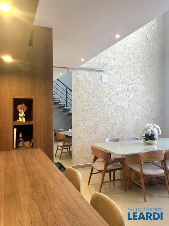 A sala de estar e jantar possui pé direito duplo, com 2 imponentes lustres de cristal, ao lado de uma cozinha americana funcional. No piso superior, a sala de TV possui um lindo hack e uma estação adicional para home office, além de preparação para home theater e persiana blackout, para uma sessão de cinema. Ao lado há um charmoso e completo banheiro. A área gourmet com churrasqueira é um capítulo à parte, com um projeto arquitetônico deslumbrante, fechada com vidro. O quintal convidativo, com vista deslumbrante permanente, permite momentos de lazer inesquecíveis.