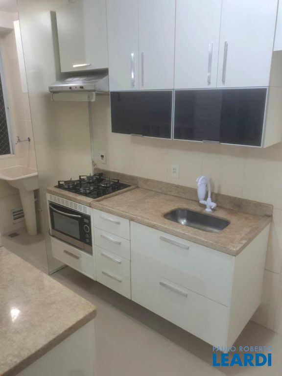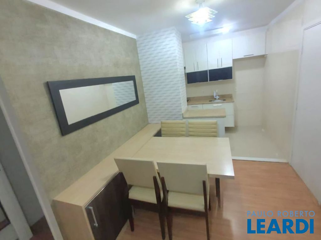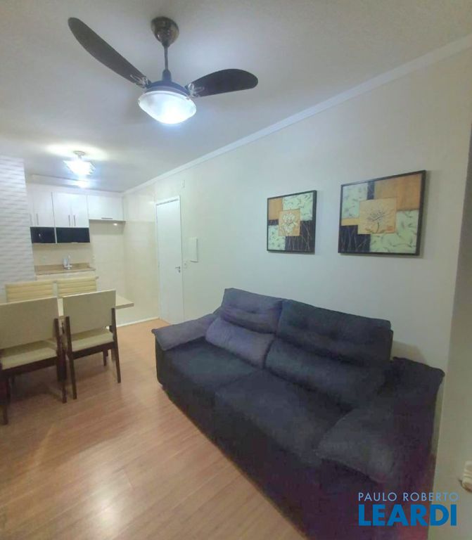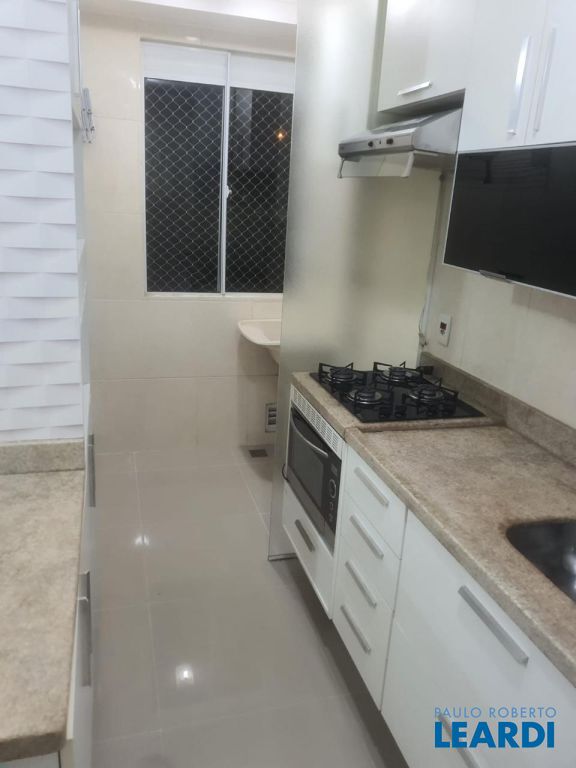Apartamento com 48 m² com sala para 2 ambientes, sacada, cozinha, lavanderia, banheiro social com gabinete e box, 2 quartos e 1 vaga. O condomínio oferece quadra poliesportiva, salão de festas, churrasqueira e playground.2011