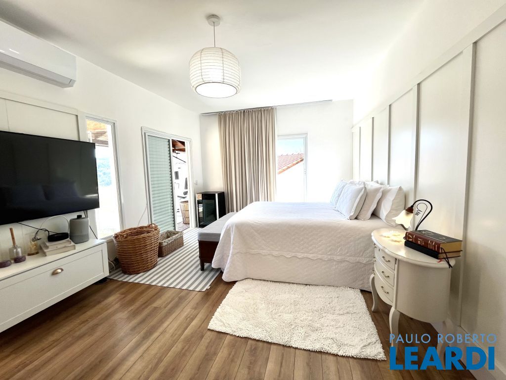 No piso térreo, um amplo living para três ambientes com lareira e pé-direito duplo cria uma atmosfera acolhedora e elegante. A cozinha integrada, acompanhada de despensa e lavanderia, traz praticidade ao dia a dia. Há ainda um quarto versátil, que pode ser transformado em uma suíte, além de lavabo e uma área gourmet perfeita para receber amigos.