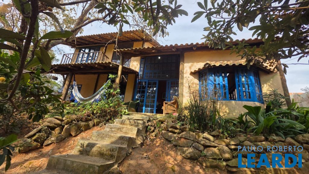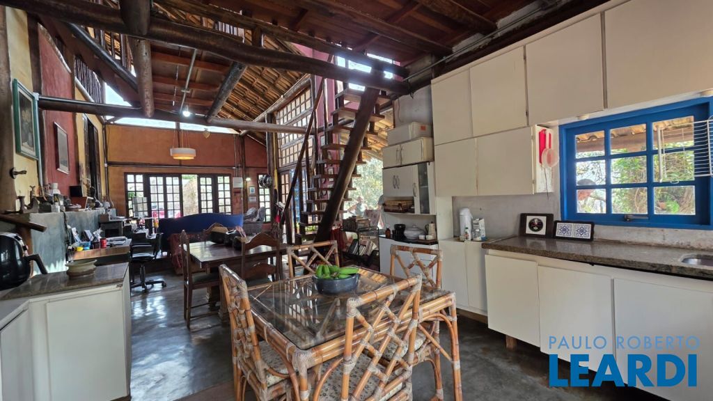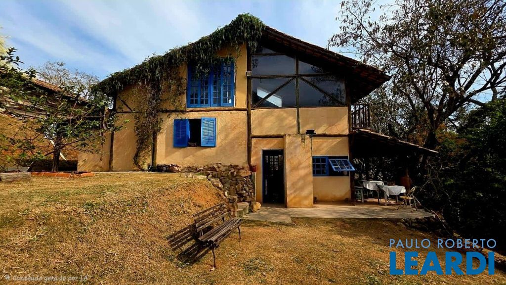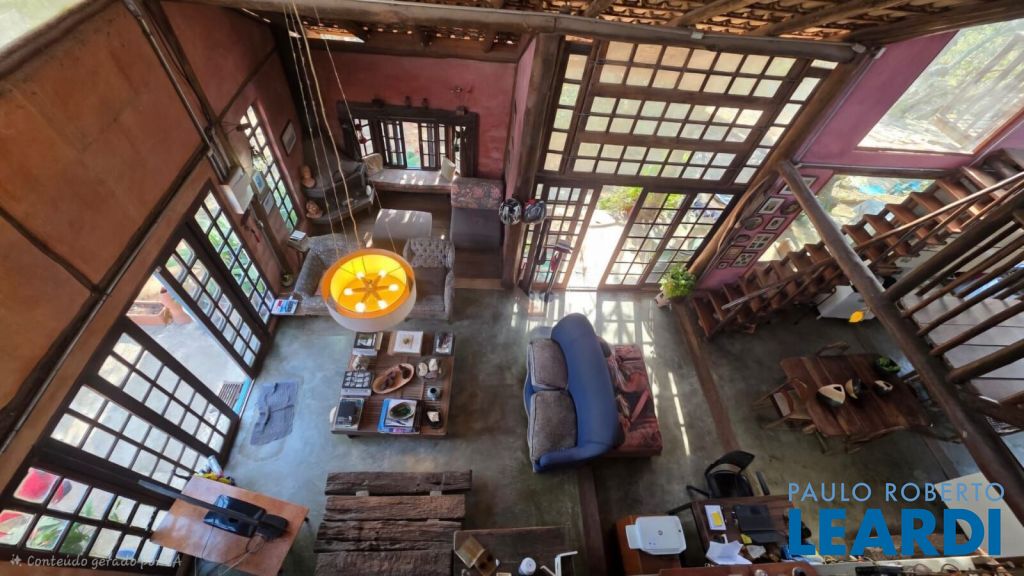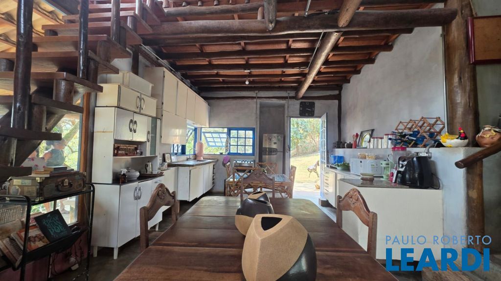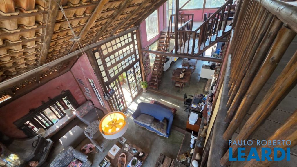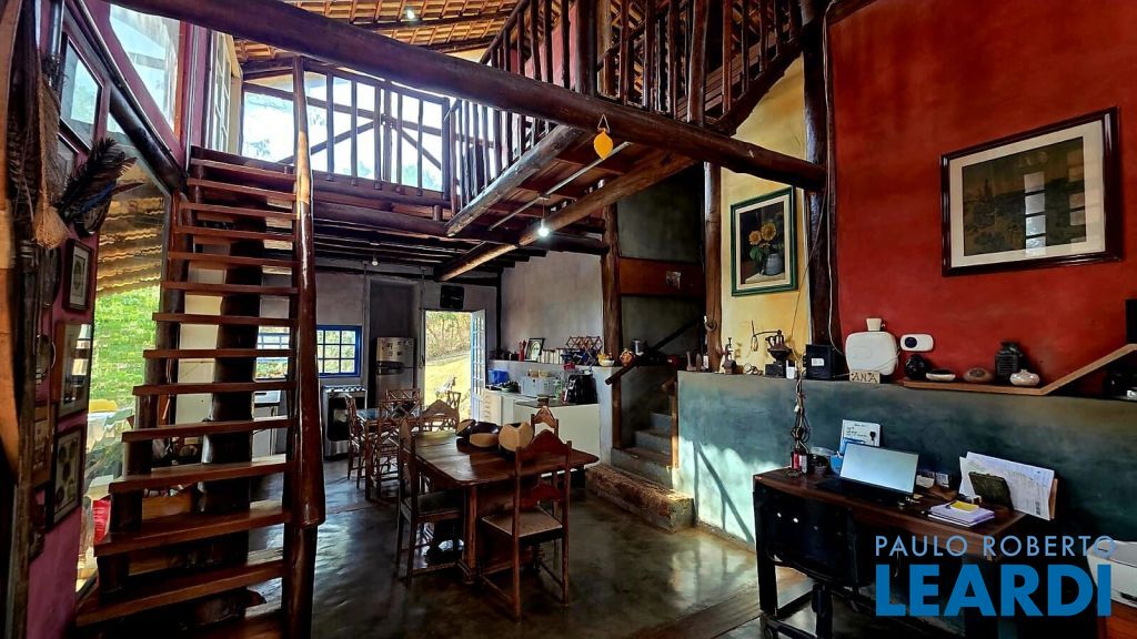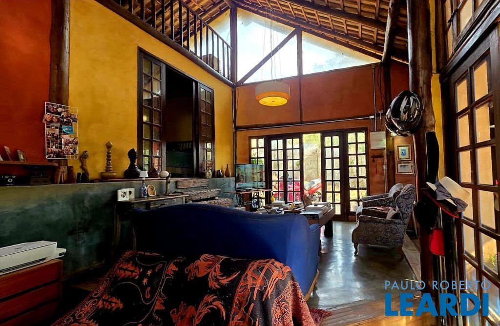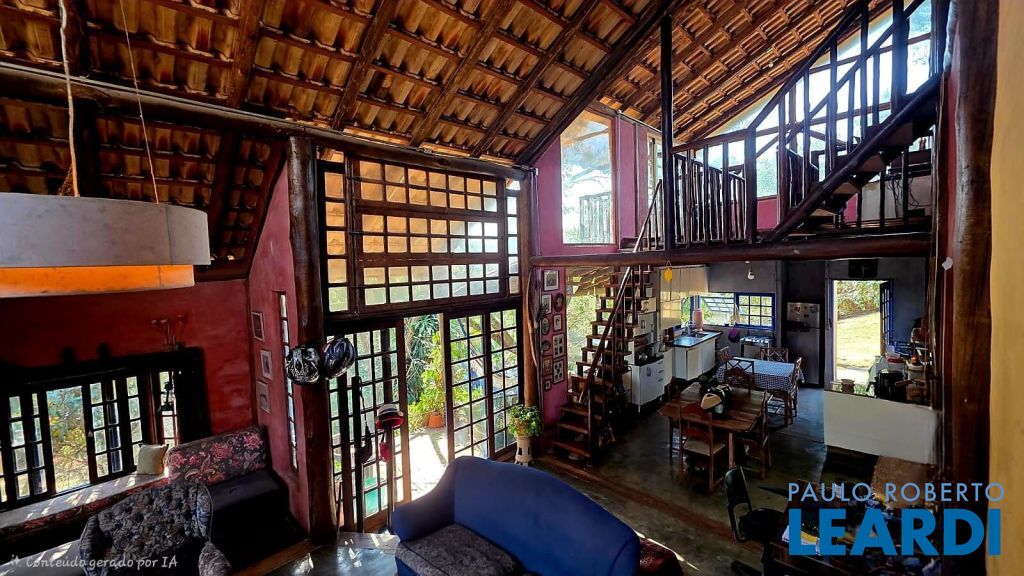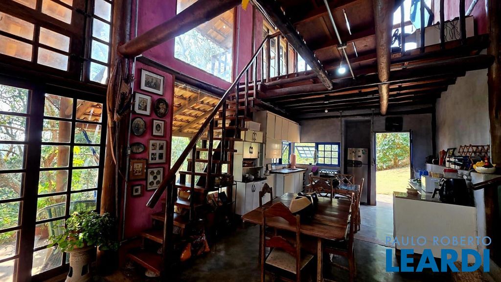 Casa rústica encantadora única e cheia de personalidade, construída em eucalipto autoclavado, com pé-direito duplo, telhado aparente, e amplos panos de vidro que integram o interior ao verde ao redor. O piso em cimento queimado completa o estilo rústico contemporâneo.