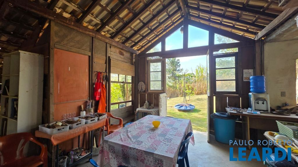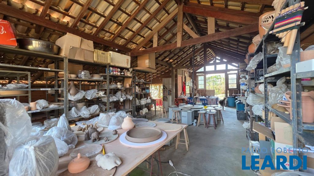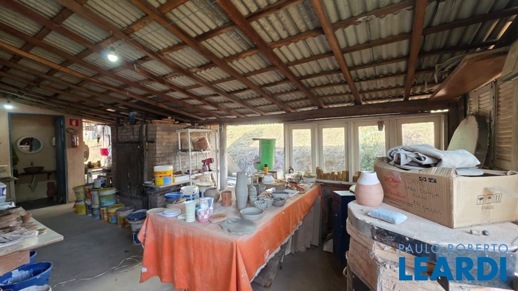 No último platô do terreno, um galpão de 12x10m abriga hoje um ateliê de cerâmica totalmente equipado, com forno a gás de alta temperatura, cozinha e banheiro de de apoio.