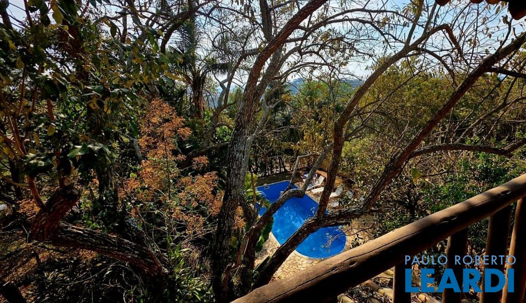 O jardim e o quintal são um convite à paz: frutíferas, árvores nativas e ornamentais formam um pequeno bosque em frente à varanda. A piscina com prainha e área de descanso completam o cenário.