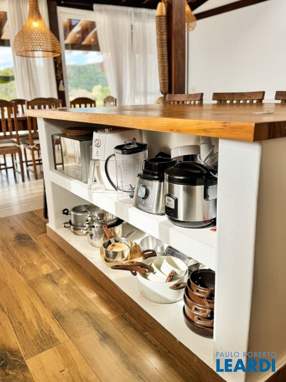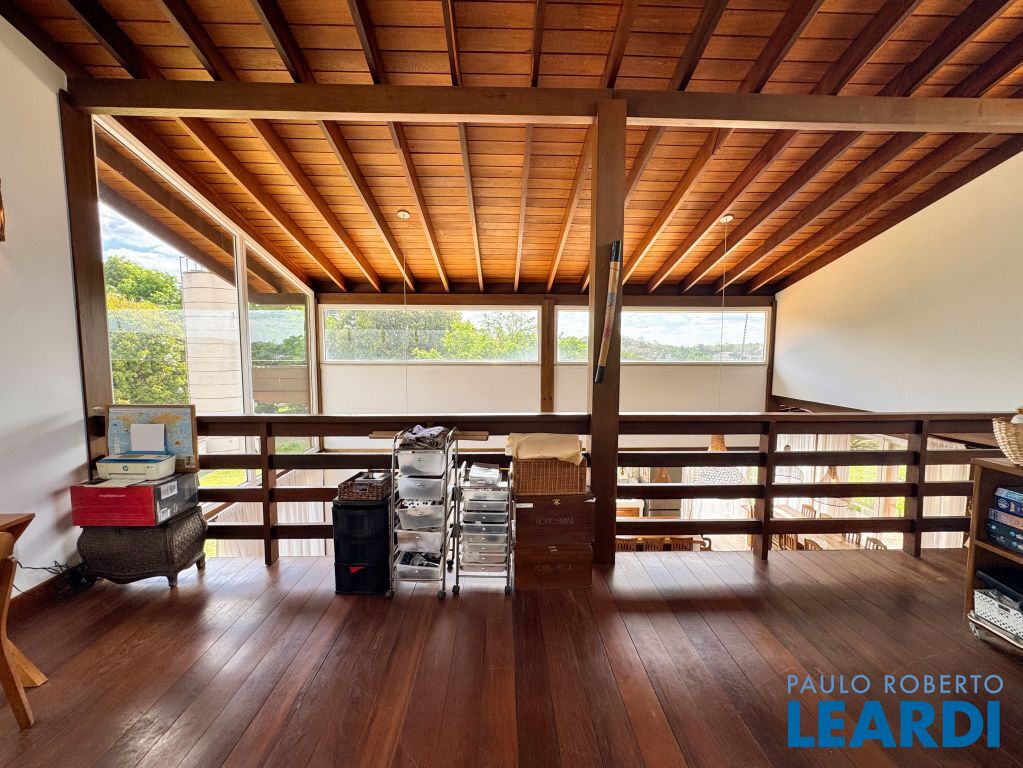 casa principal, com 3 suítes, amplo living com pé direito duplo, com mezanino, casa de hóspedes, 2 quartos,sala, cozinha e banheiro.