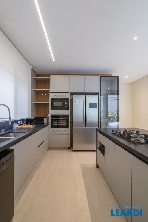 Cozinha com ilha central integrada ao gourmet, também com ilha