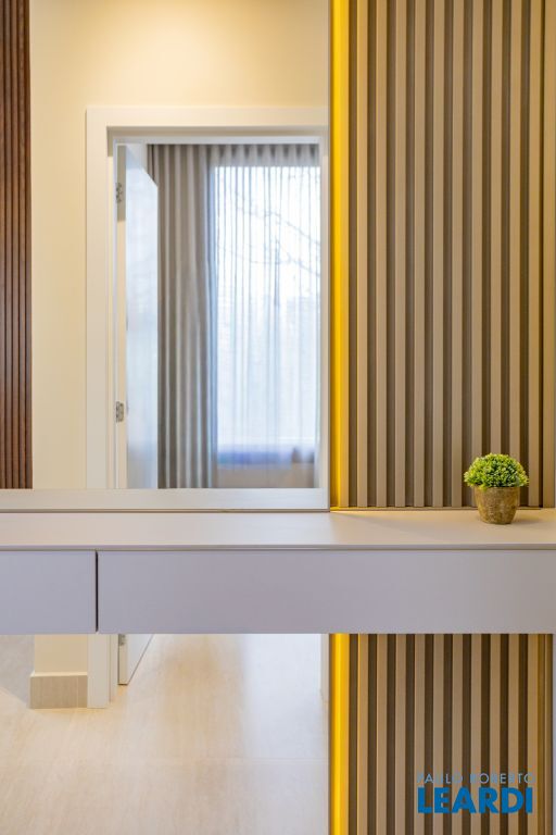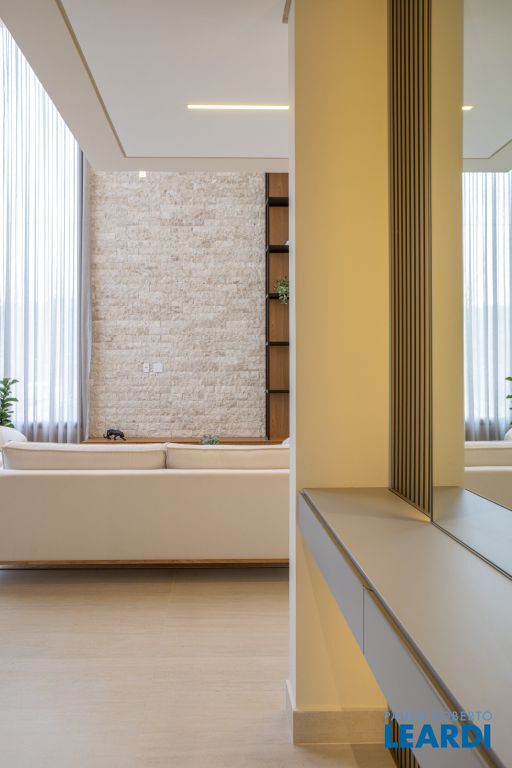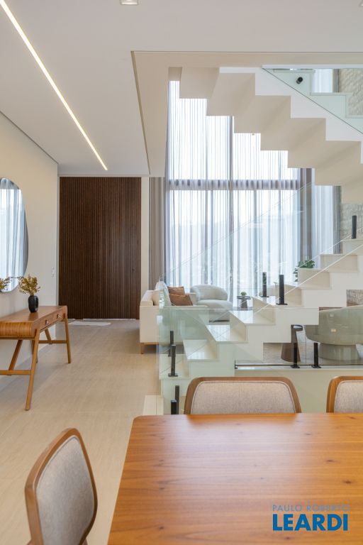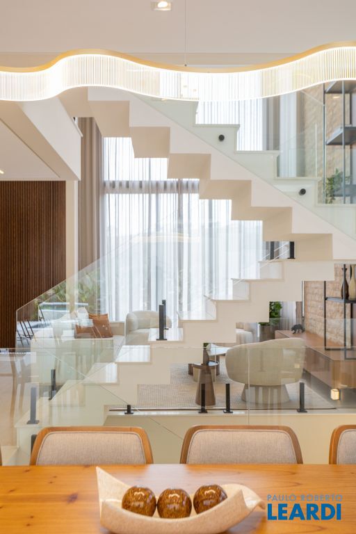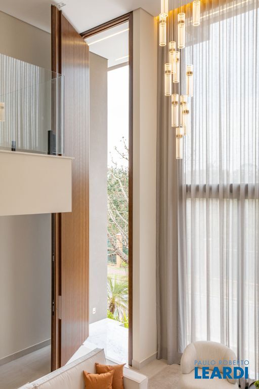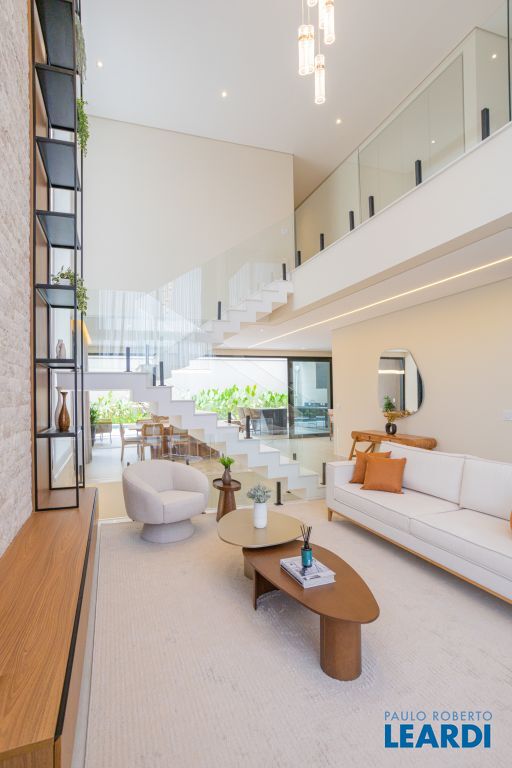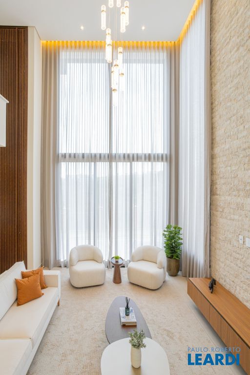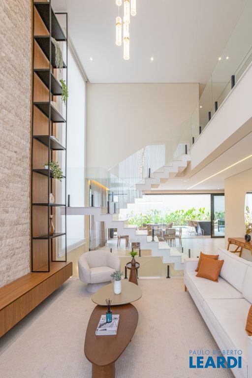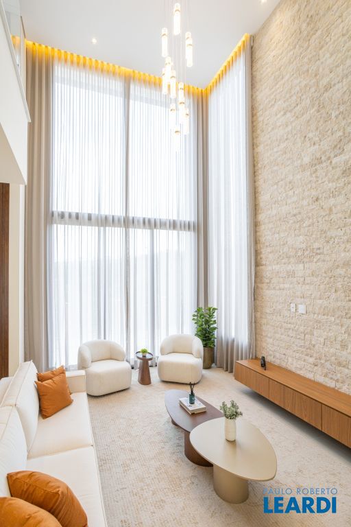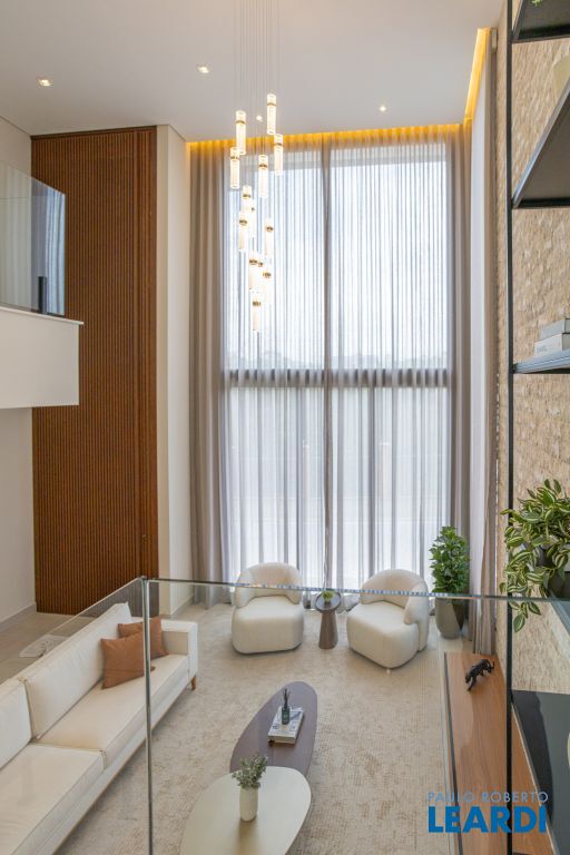 Sala com pé-direito duplo, que amplia a luminosidade e sofisticação dos ambientes