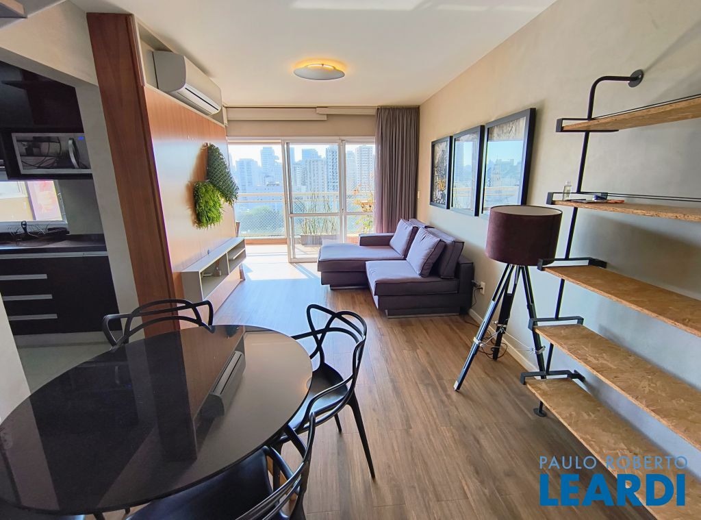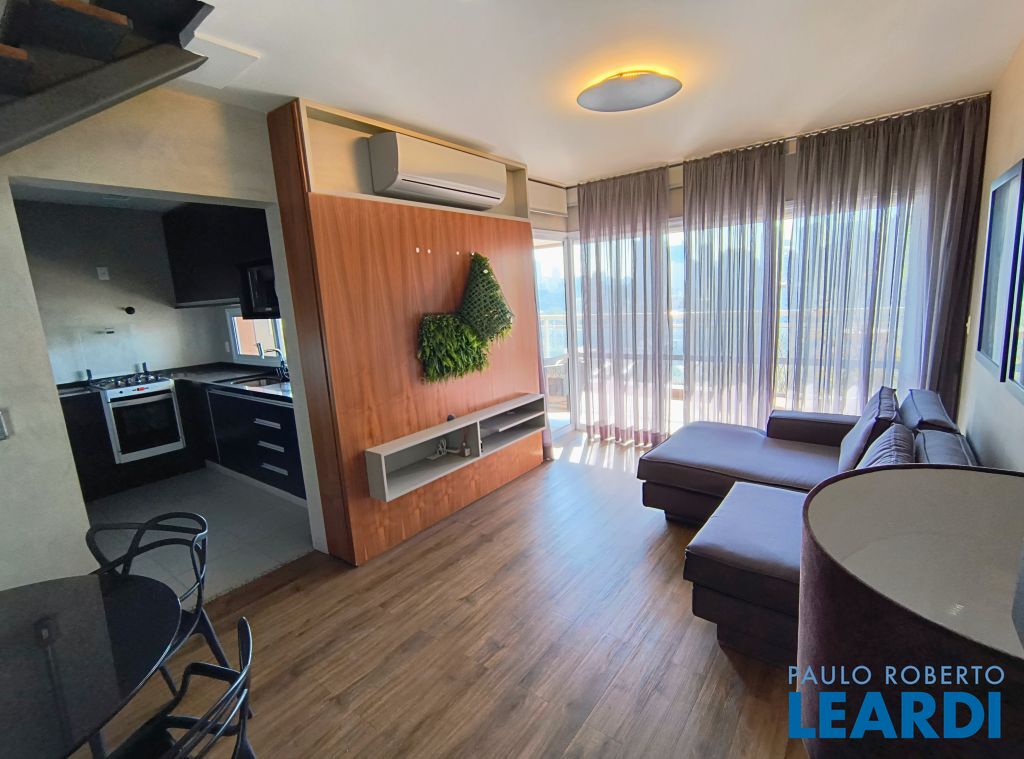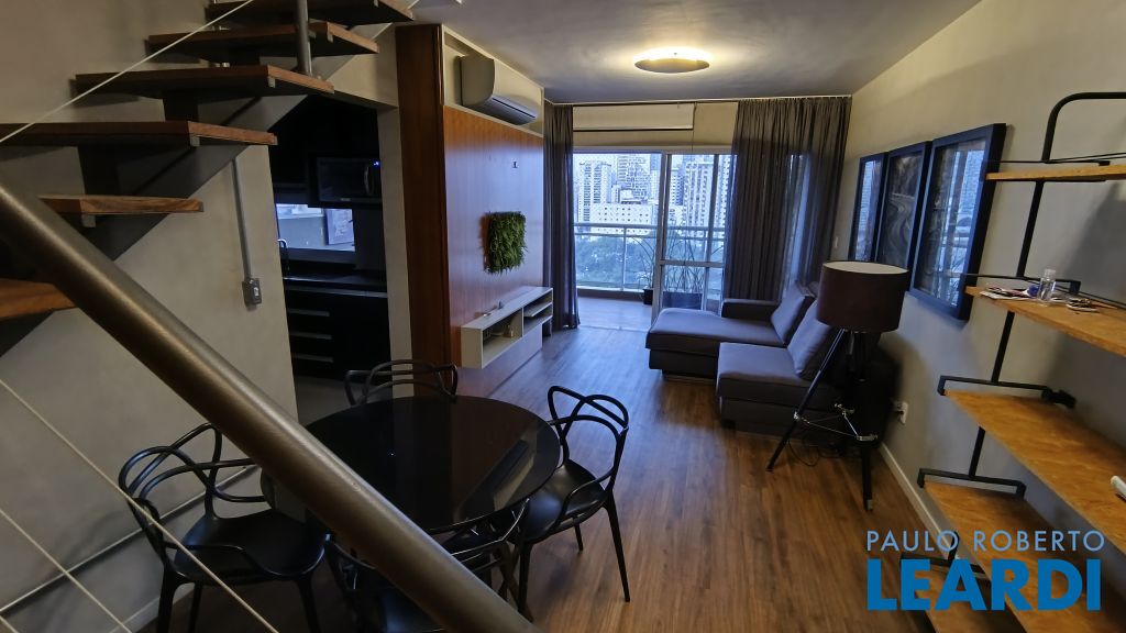 Apartamento com 109m² Duplex mobiliado e muito aconchegante. Andar Alto. Living com 2 ambientes bem espaçosos com ar condicionado, lavabo e com acesso a espaçosa varanda coberta e mobiliada, vista livre. Cozinha bem arejada com armários planejados e novos, geladeira, fogão a gás, forno e microondas, e área de serviço. Na parte superior são duas suítes com armários e ar condicionado, a principal suíte com closet e uma ampla varanda com vista livre. Duas vagas de garagem. Agende sua visita e conheça essa unidade super aconchegante. Condomínio com piscina - solarium - Sauna seca - academia - coworking - jardim. Apartamento para Locação 2 dormitórios em Pinheiros.1611