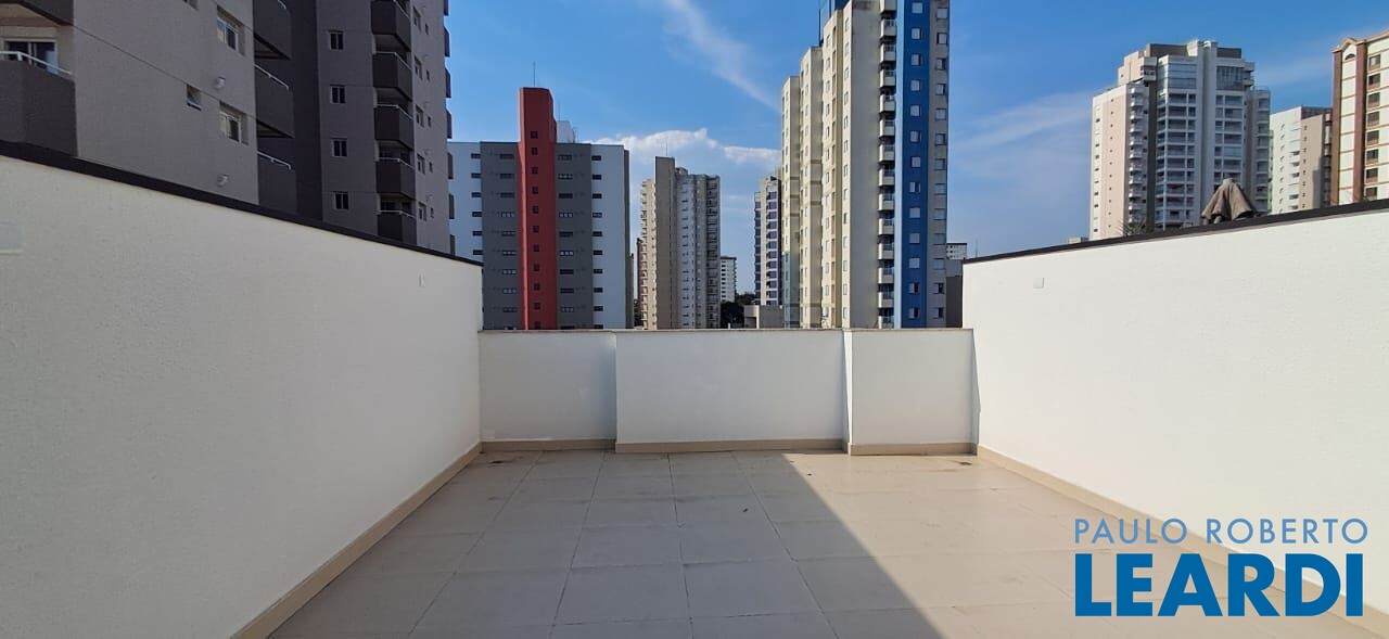 Cobertura com elevador á venda no bairro Jardim Bela Vista em Santo André: de baixo condomínio com elevador com 2 dormitórios sendo 1 suíte com sacada, sala, cozinha, área de serviço, também com escada interna para a cobertura já com parte coberta, porta de vidro, churrasqueira, lavabo, quintal e 2 vagas de garagem.