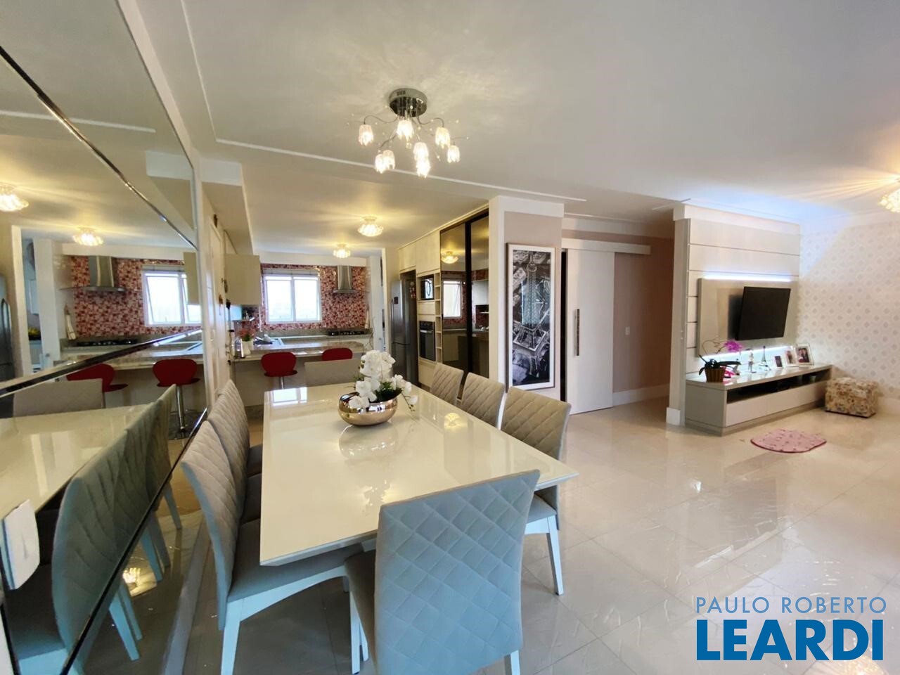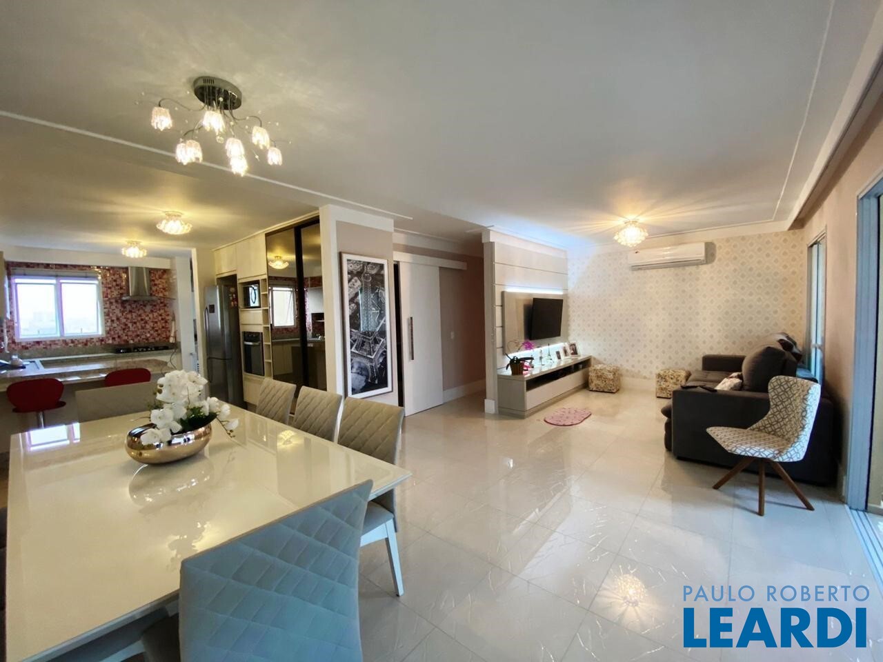 3 suítes, sendo 1 suíte com closet ampliado, sala de estar, sala de jantar, terraço gourmet, cozinha, lavabo, área de
