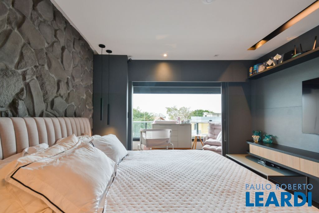 A composição atual é de uma suíte master com closet e sala espaçosa integrada com a cozinha e terraço, além de lavabo.