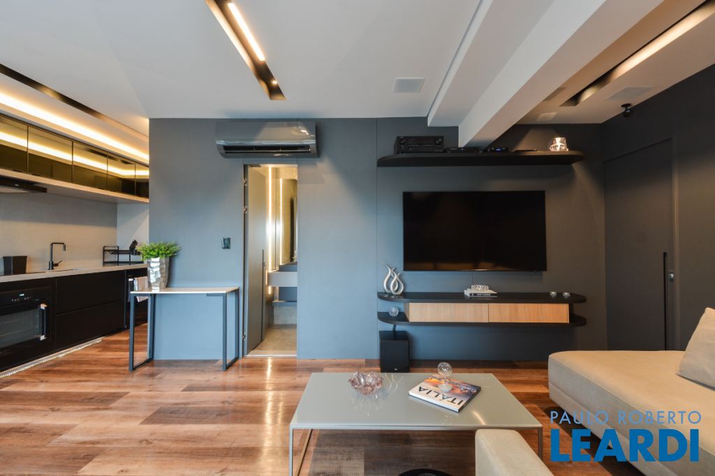 Apartamento moderno, todo automatizado e com iluminação que compõe vários ambientes. Pensado para quem privilegia espaço para dormir e receber; o apartamento tem uma suíte master e área social espaçosa. A planta original tinha dois dormitórios, sendo uma suíte.