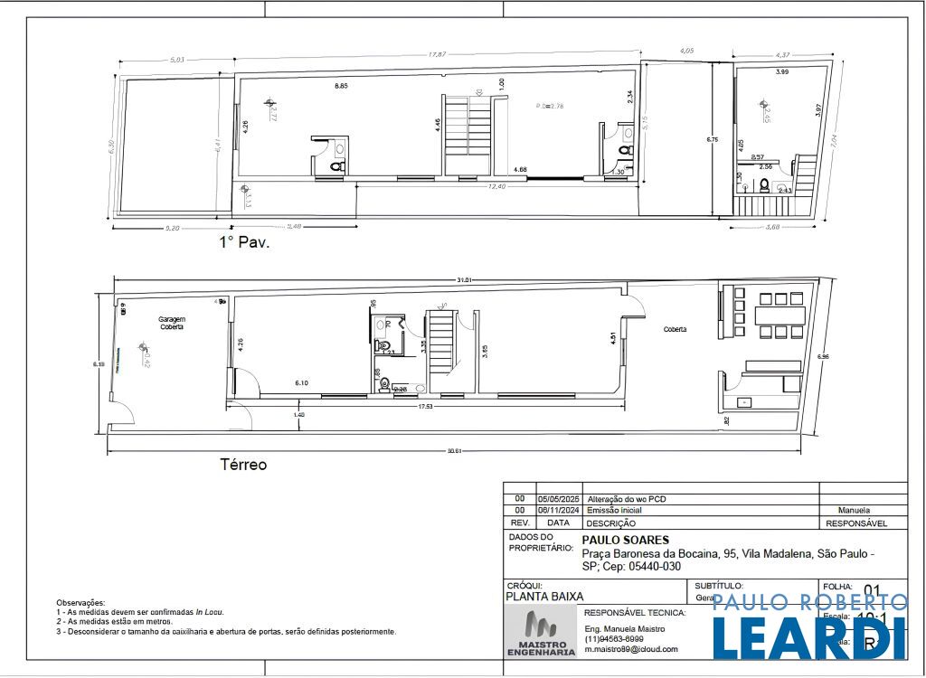 Também foram trocadas as caixas dáguas, com pressurizador em toda rede hidráulica, chuveiros novos e troca de toda fiação da rede elétrica com cabos de primeira qualidade para qualquer atividade.